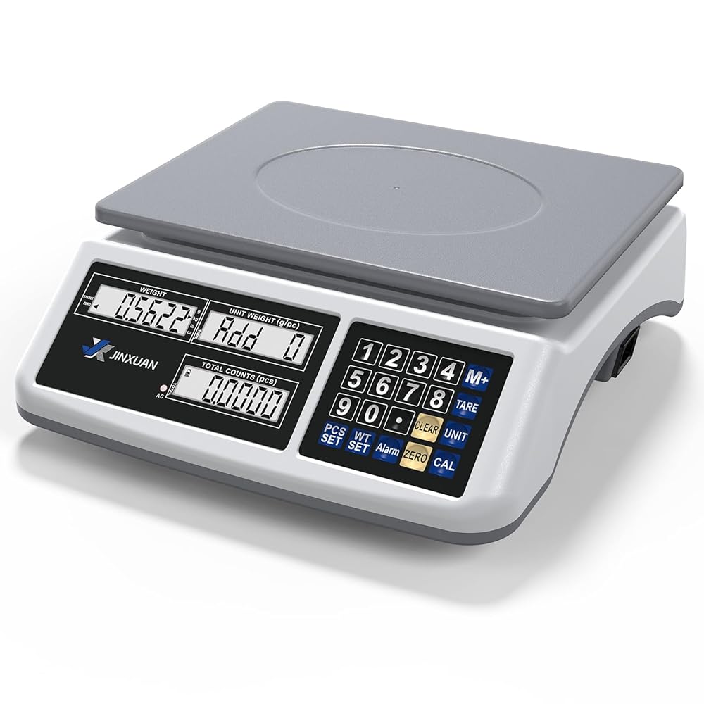 👍【Innovative Dual LCD Display Counting Scale】Unlike conventional single-display counting scales, JINXUAN parts scale features an exclusive front and rear dual-display design. Which allows both the operator and viewers/customers to clearly read the weight and counting numbers from either side. Greatly improving operational efficiency for inventory counting, packaging and production line use. The clear, easy-to-read backlit LCD display ensures accurate data capture in various environments