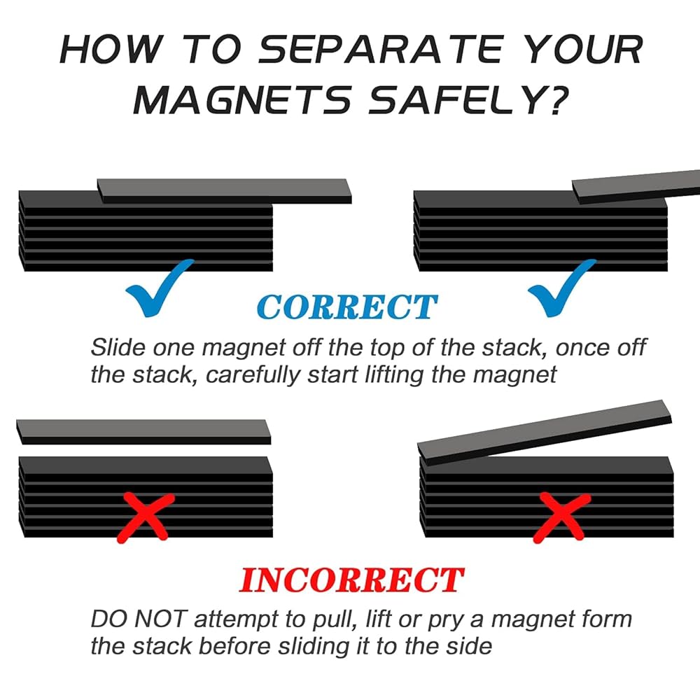 CHOOSE MULTIPLE STRENGTH: From N25 to N52. Our rectangular magnets come in multiple grades, allowing you to choose the perfect magnet strength according to your specific needs. You can confidently choose the appropriate grade for any task or project