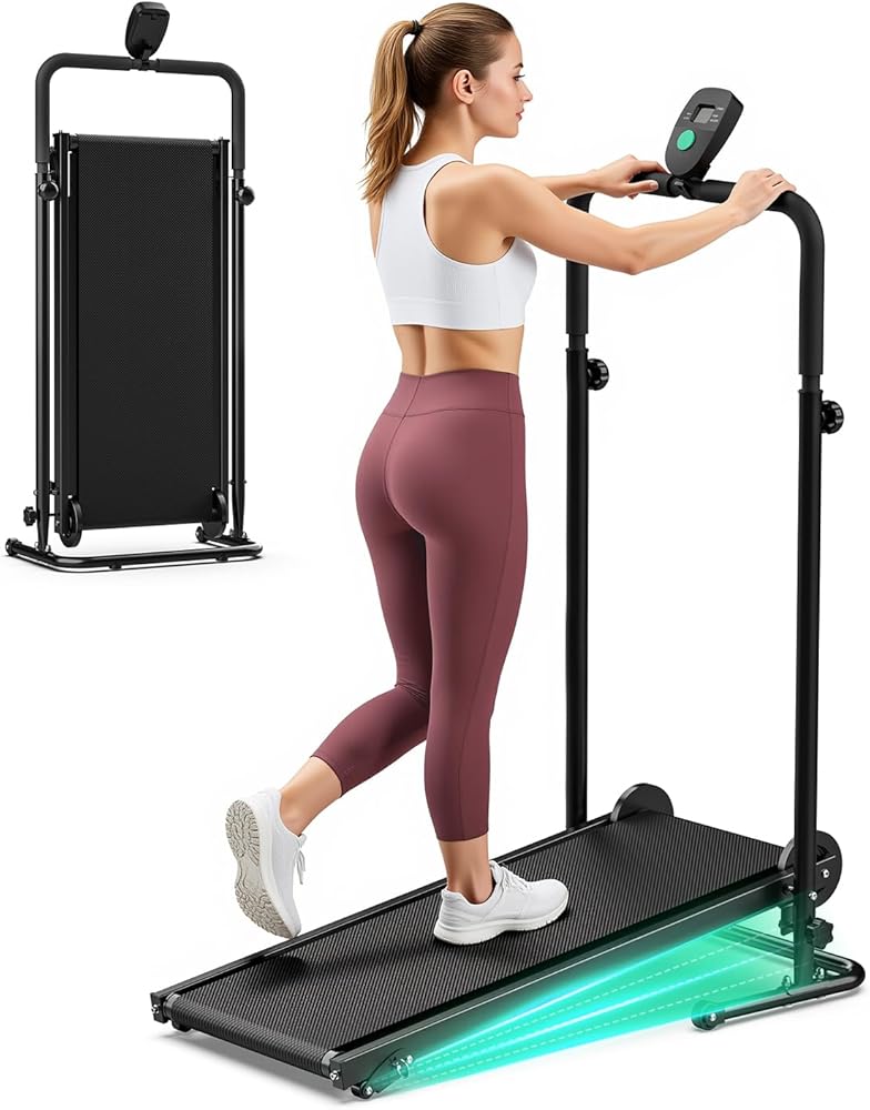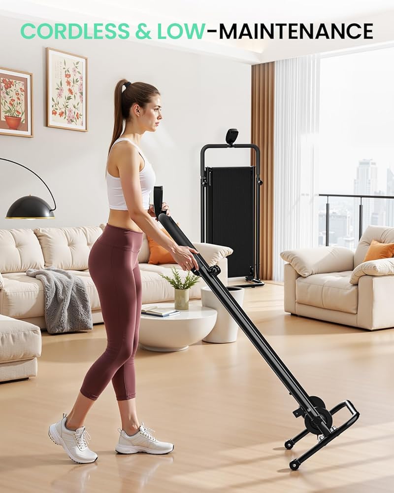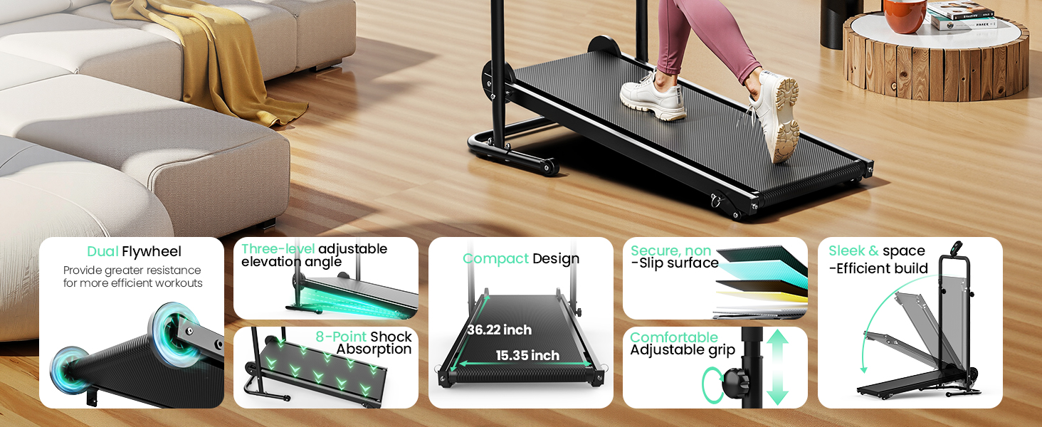 【تصميم أنيق وموفر للمساحة】يتميز جهاز المشي هذا بهيكل خفيف الوزن يسهل المناورة به، وهو مناسب تمامًا لمساحات المعيشة المريحة. يوفر سطح الجري مقاس 36 × 15 بوصة دعمًا قويًا، ويلبي احتياجات المشي السريع والركض اللطيف دون شغل مساحة زائدة.
