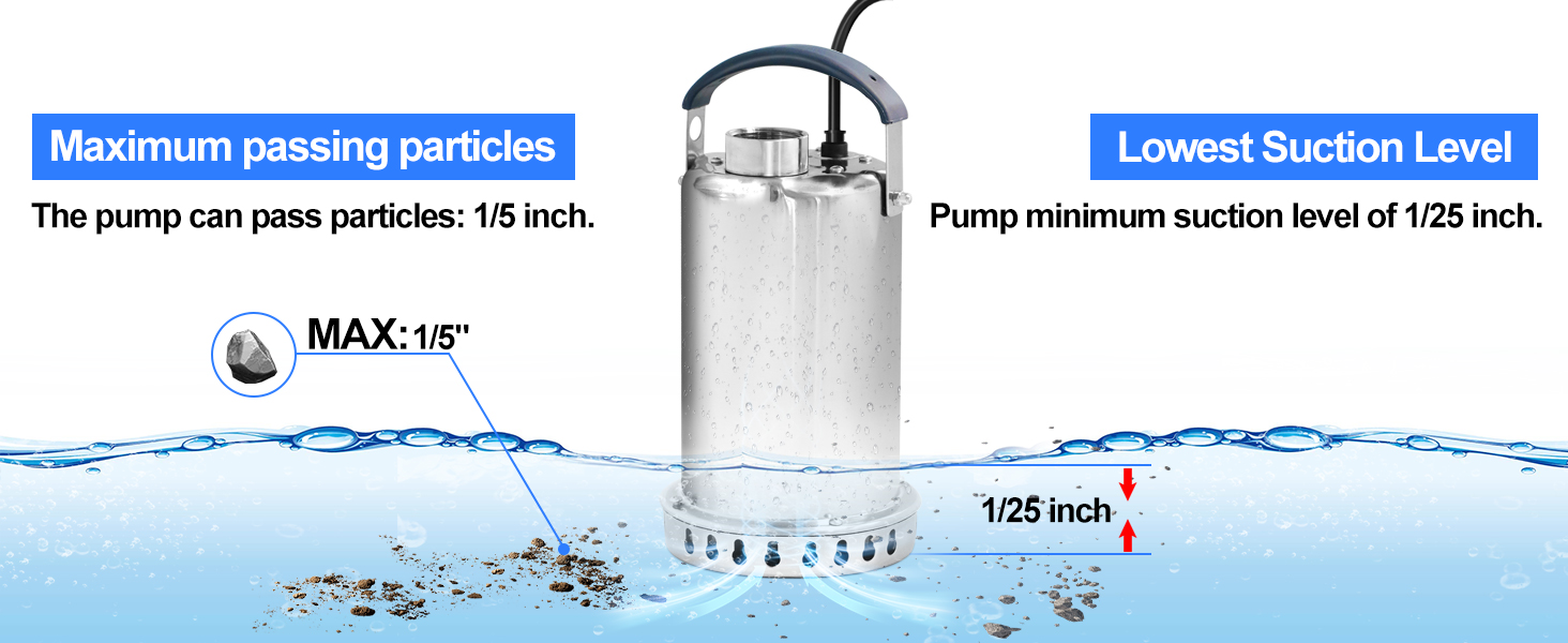 مضخة مستنقع قوية: هذه المضخة الغاطسة مع محرك PSC عالي الأداء تنتج 3/4 حصان من الطاقة، مما يضمن تدفق أقوى وأكثر كفاءة في استخدام الطاقة. يمكن للمضخة رفع الماء حتى ارتفاع 32 قدمًا عموديًا وتحريك ما يصل إلى 3500 جالون في الساعة للتعامل مع أي مهمة تصريف في جزء صغير من الوقت.