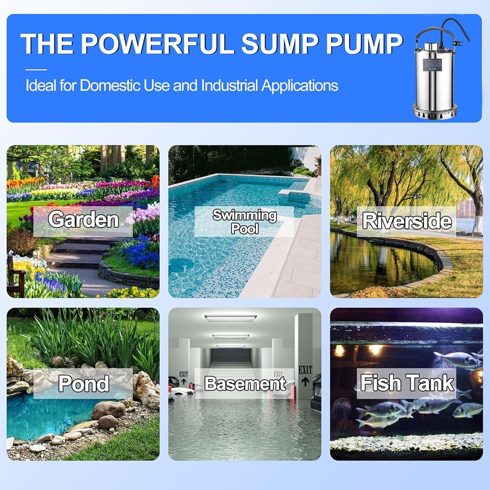 مضخة مستنقع مضخة مياه غاطسة 3/4HP 3500GPH من الفولاذ المقاوم للصدأ مضخة نقل المياه المحمولة الكهربائية لتصريف حوض السباحة الساخن ومضخات المرافق في الطابق السفلي