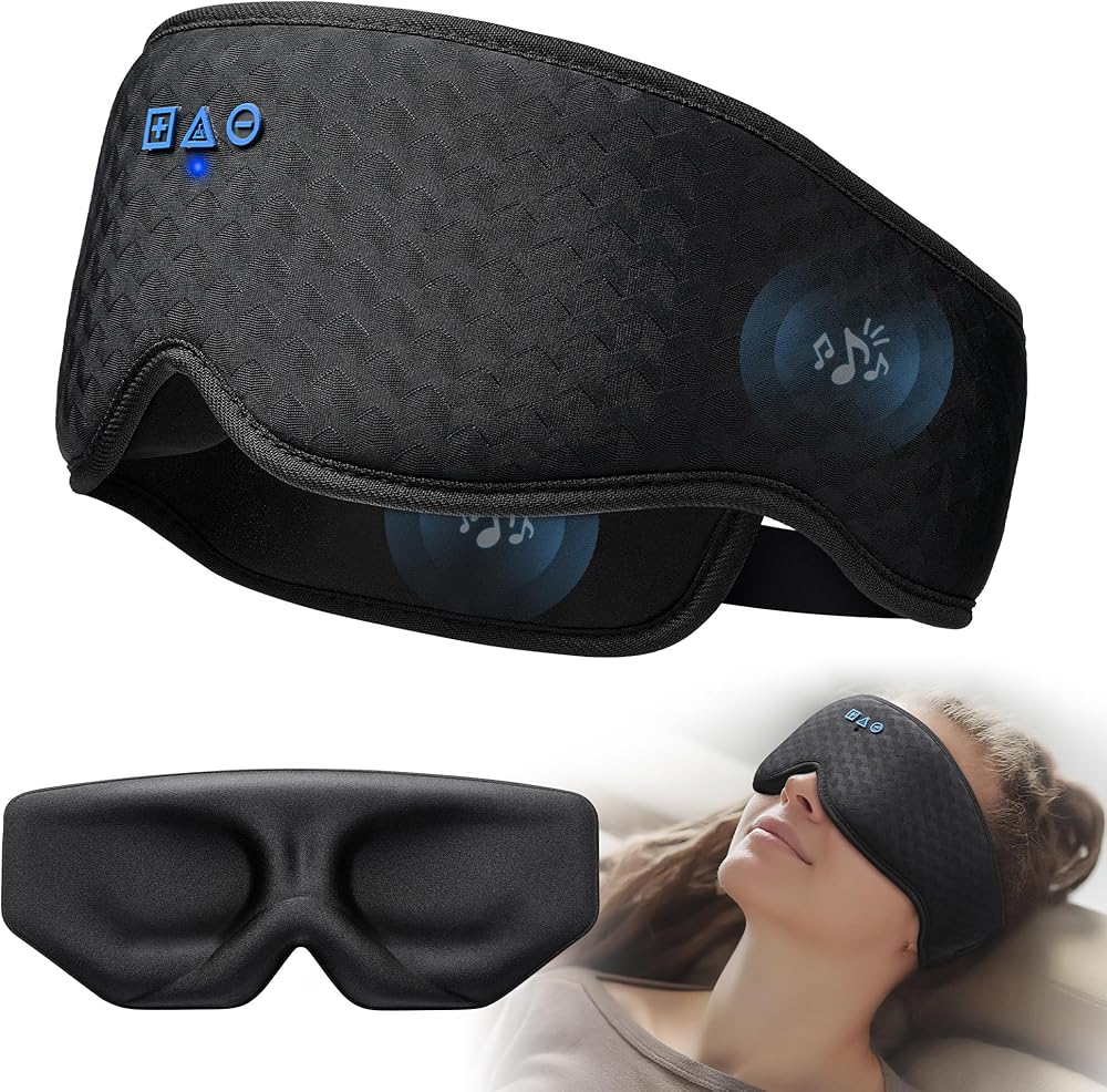 سماعات رأس بلوتوث لقناع النوم: قناع تعتيم بنسبة 100% للعين مع بطانة محيطية ثلاثية الأبعاد قابلة للفصل والغسل - بدون ضغط على العين، بدون سحق الرموش، مكبرات صوت قابلة للتعديل، بلوتوث 5.4، هدية للراحة والسفر