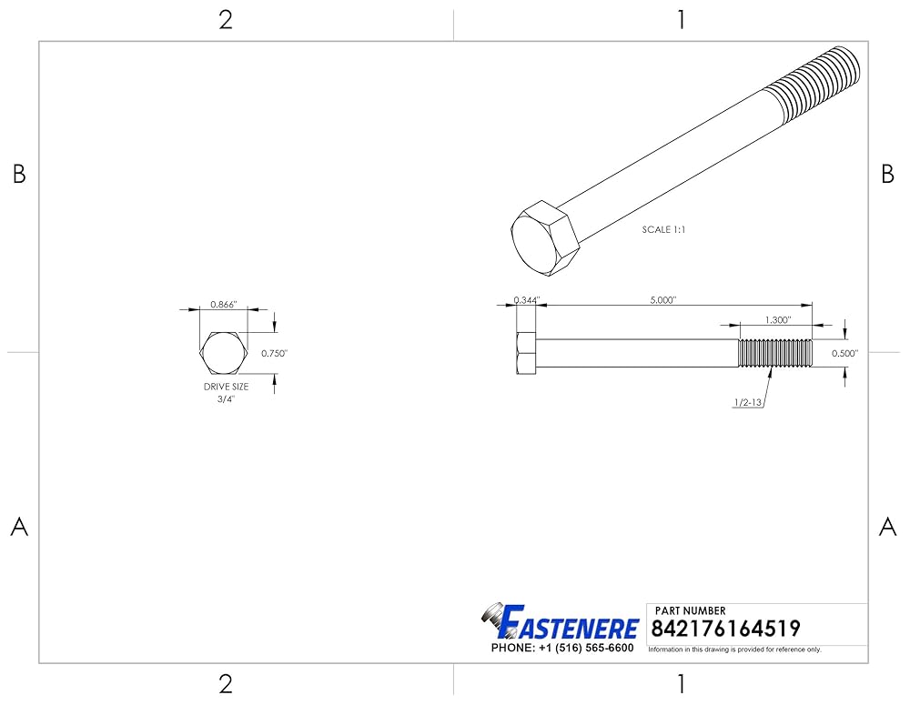 مسامير لولبية سداسية بغطاء رأس 1/2-13 × 5 بوصة، محرك سداسي خارجي، الفولاذ المقاوم للصدأ 304، ملولبة جزئيًا، الفولاذ المقاوم للصدأ، الكمية 10 من Fastenere