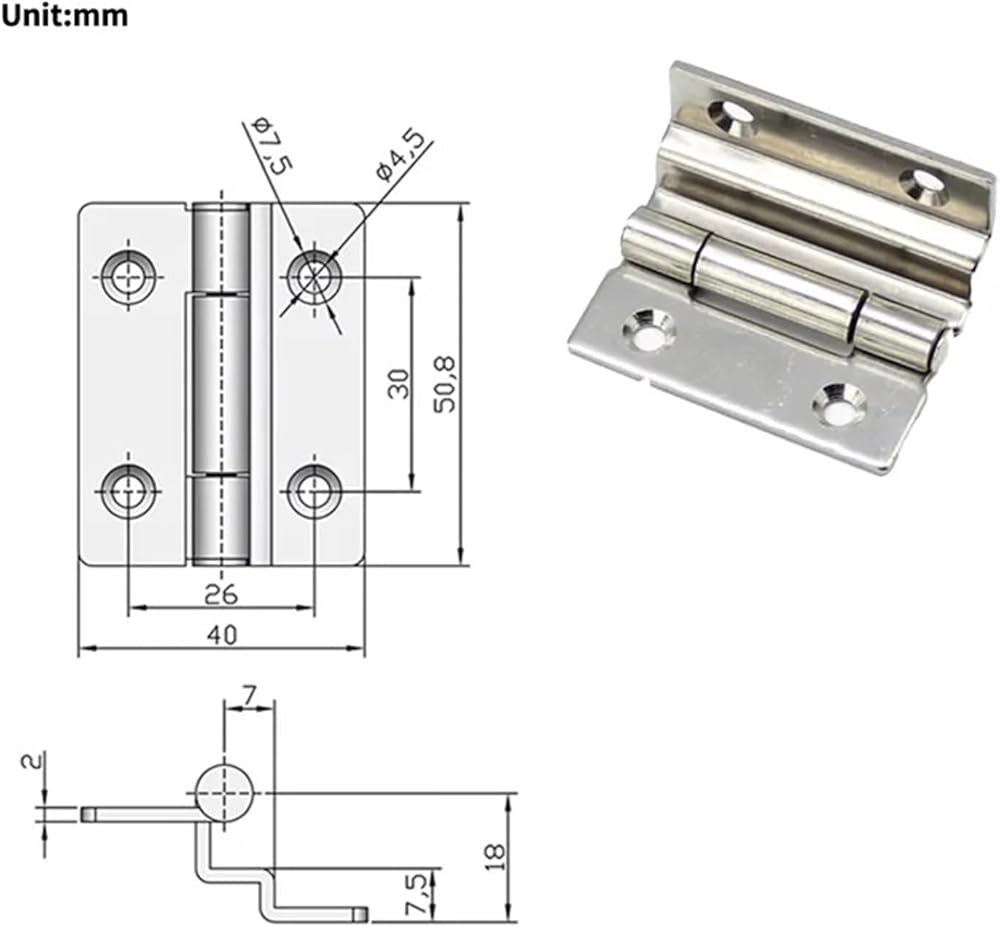 Double Right-Angle Bent Hinge Industrial Cabinets And Equipment Folding 304 Stainless Steel 180 Degrees 1Pcs
