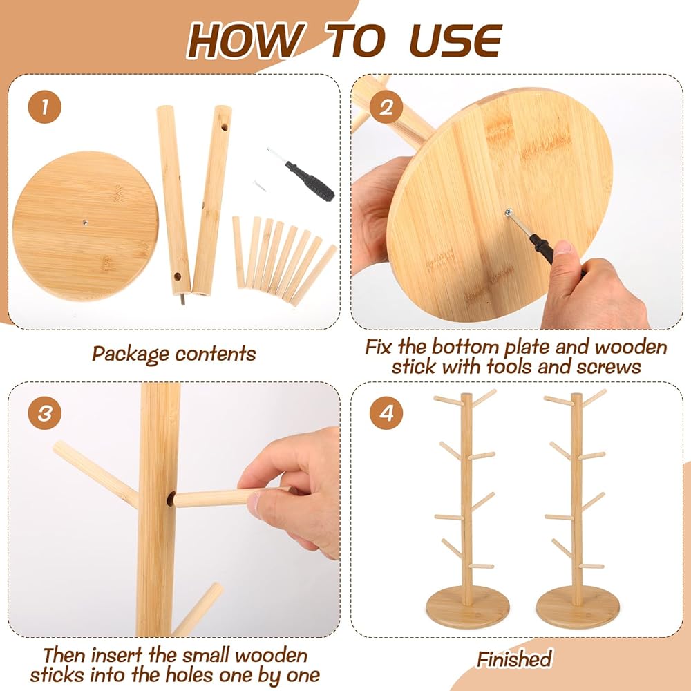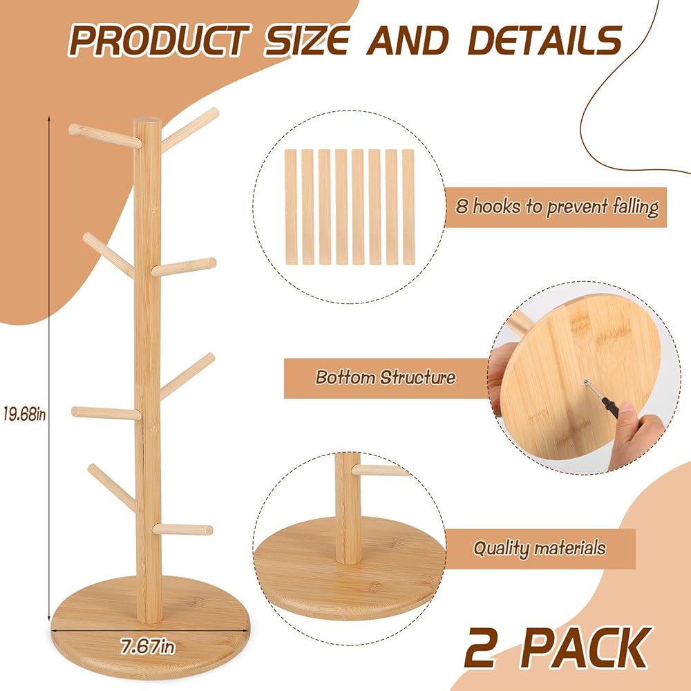 【Removable Arms】Each bamboo pretzel rack features 8 detachable arms positioned at varying heights and angles to maximize space efficiency. They are easy to attach or remove, offering flexible storage options while saving valuable counter space.