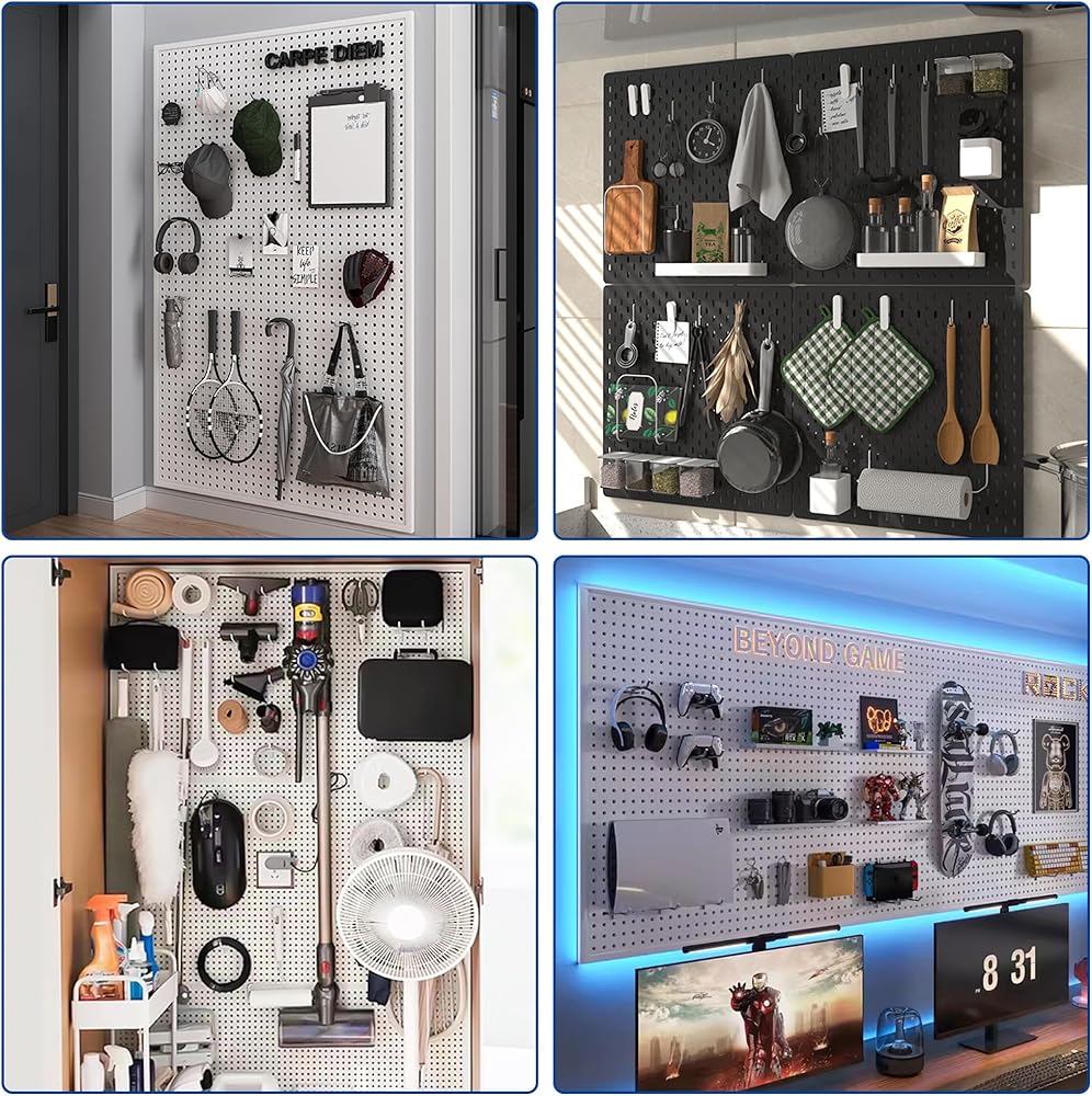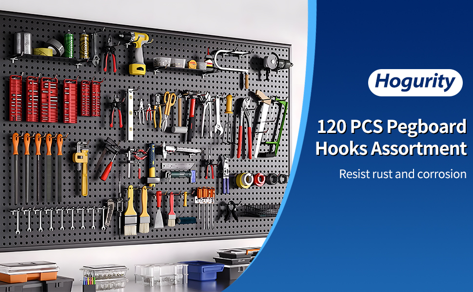 التوافق العالمي: قل وداعًا لمخاوف التوافق! إن مجموعة خطافات Pegboard الخاصة بنا هي أعجوبة متعددة الاستخدامات، ومصممة لتناسب بسلاسة كلاً من ألواح Pegboard مقاس 1/8 بوصة و1/4 بوصة مع مسافة 1 بوصة. سواء كانت لوحات تعليق معدنية أو غير معدنية، فسوف تستمتع بتوافق سهل يتيح لك العمل دون قيود.