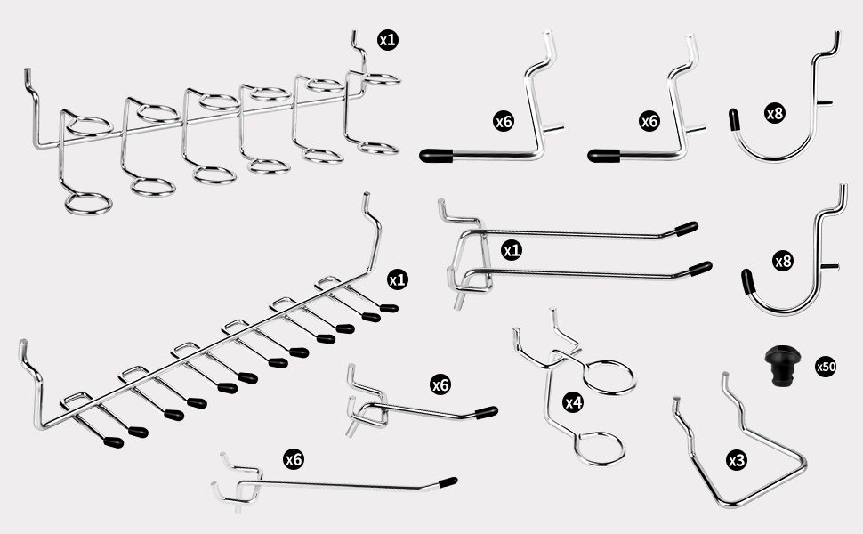 5. حل تنظيم متعدد الاستخدامات: احتضن بيئة خالية من الفوضى عبر المرآب الخاص بك ومنضدة العمل والطابق السفلي وغرفة الأدوات باستخدام خطافات اللوح المعدنية الخاصة بنا. تلبي مجموعة أنواع الخطافات وظائف مختلفة، وتحول المساحات الفوضوية إلى مجالات متناغمة من الكفاءة. مع خطافاتنا، تصبح الفوضى شيئًا من الماضي عندما تشرع في رحلة منظمة.