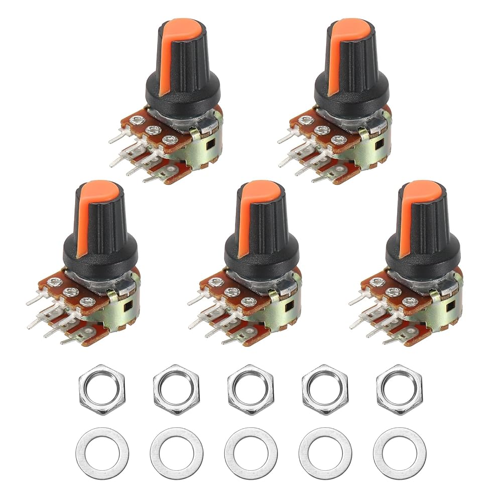 اللون: برتقالي؛ الموديل: WH148؛ المقاومة الاسمية: B20K±20%؛ حجم العمود: 6 × 15 مم / 0.24 × 0.59 بوصة (ضياء * طول)؛ في العبوة: 5 قطعة × مقاييس الجهد؛ 5 قطعة × مقابض؛ 5 قطعة × غسالات؛ 5 قطع × مكسرات
