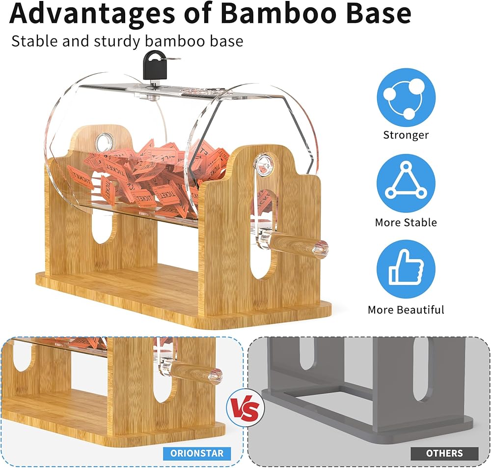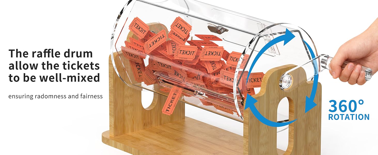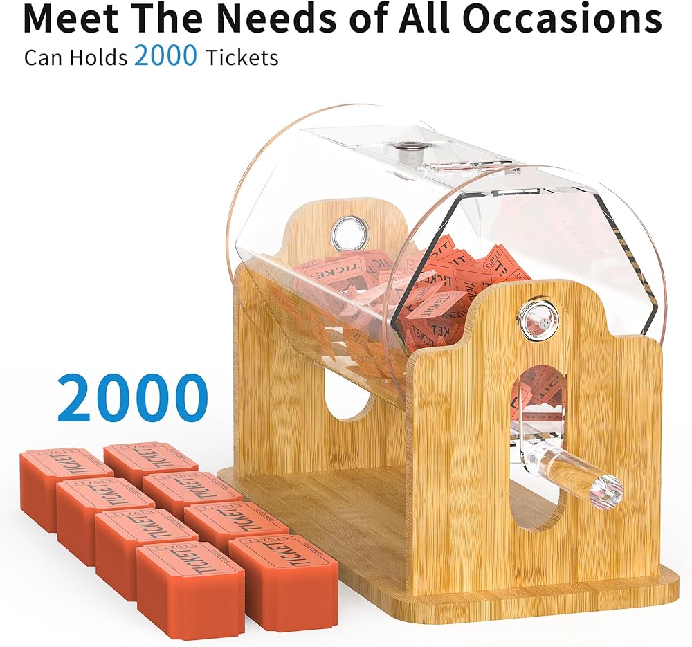 [سعة آمنة وكبيرة] - يحمل هذا الدوار الاحترافي ما يصل إلى 2000 تذكرة أو 50 كرة رسم. يحمي نظام القفل المزدوج مدخلاتك، بينما يسمح الباب المنزلق الواسع بالوصول السريع والسهل عند الإعلان عن الفائز.
