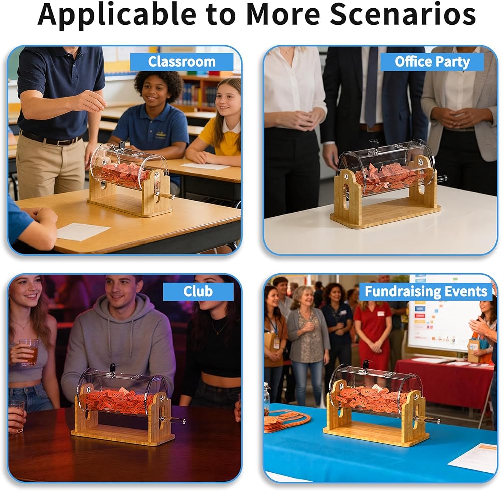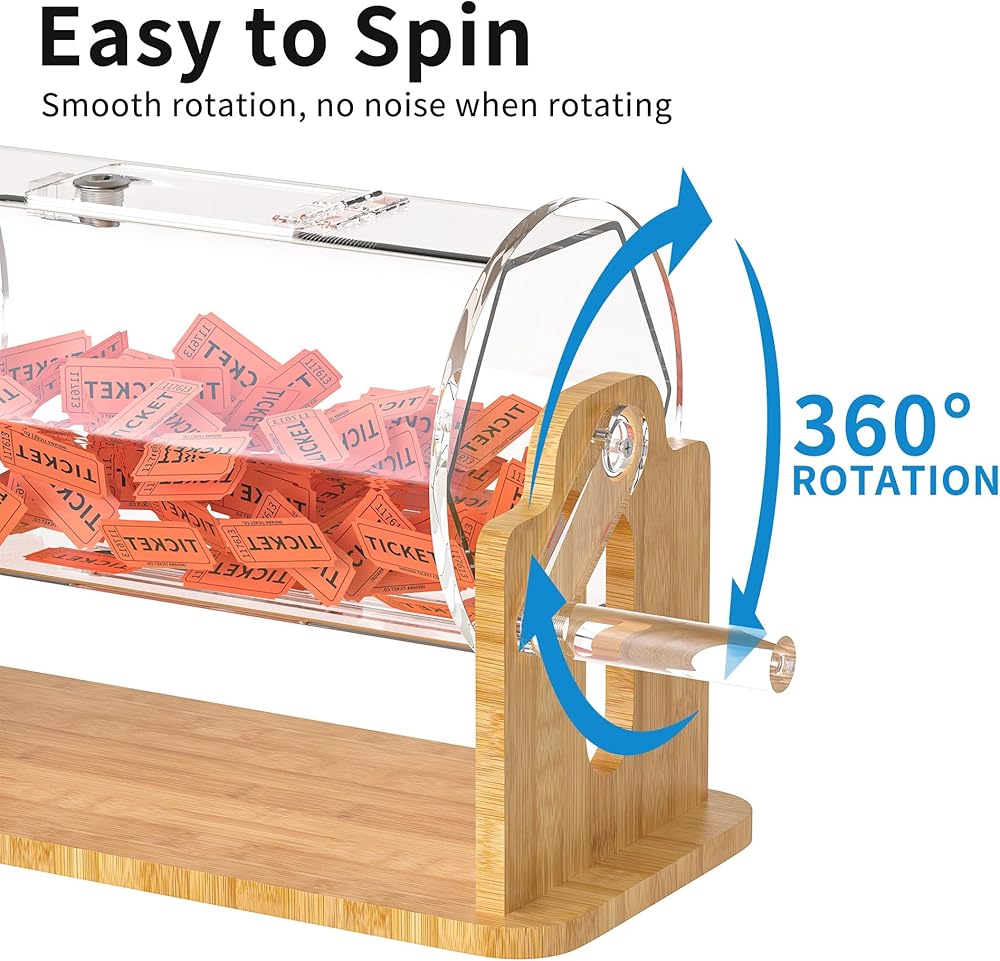 [العدالة المرئية للأحداث] - بناء الثقة الفورية أثناء الرسومات الخيرية أو الكرنفالات المدرسية. توفر أسطوانة الأكريليك الشفاف رؤية 360 درجة، مما يسمح للمشاركين بمشاهدة كل تذكرة تمتزج بدقة، مما يضمن تجربة شفافة لجميع المشاركين.