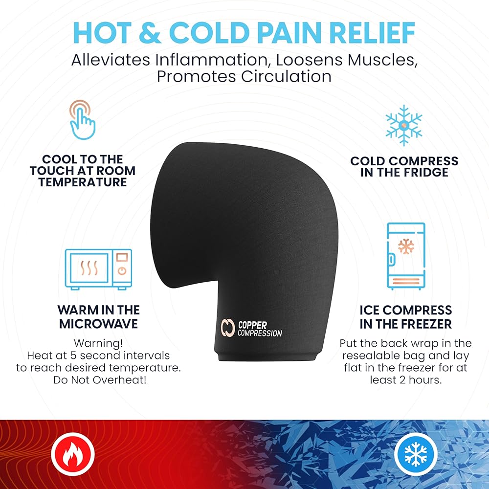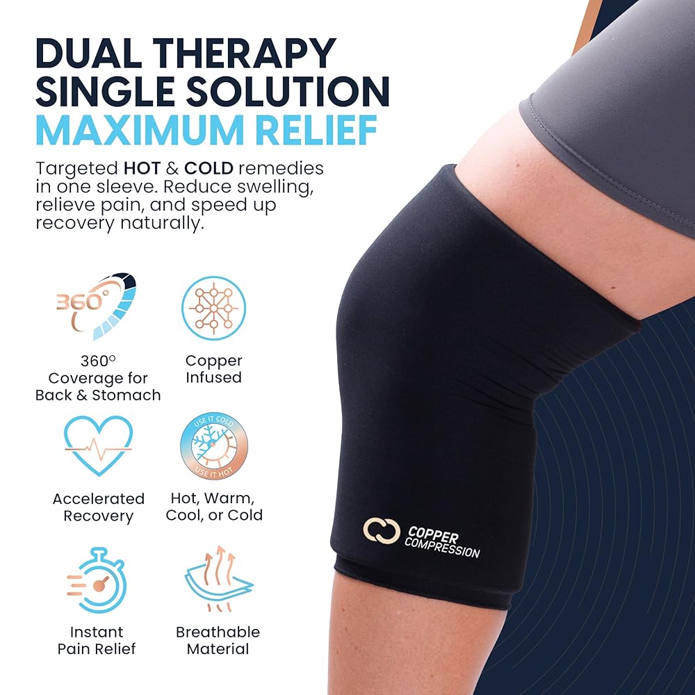دعم العلاج الساخن والبارد لغطاء الركبة CopperFreeze™ من النحاس المضغوط لتخفيف الألم والتورم والتعافي من الإصابات - تخفيف مملوء بالنحاس بزاوية 360 درجة للركبتين والمفاصل