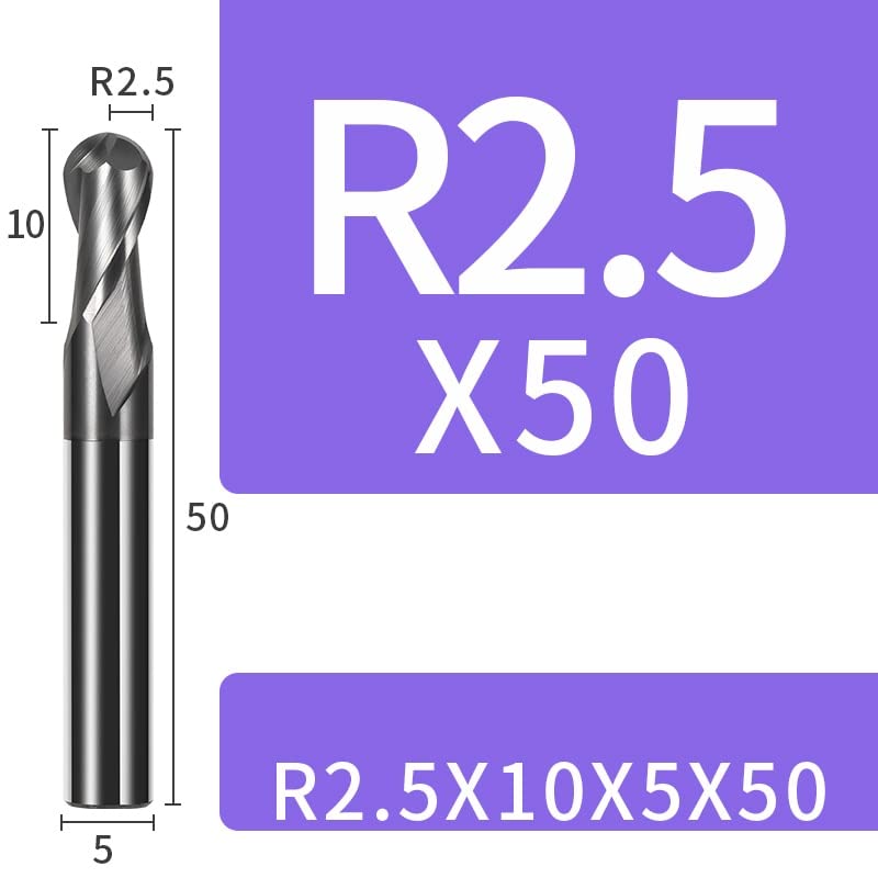 • Ball end cut 2-flute design spiral chip space design for fast and clean chip removal. Sharp cutting edge provides smooth cutting.