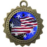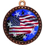 ميدالية ثقيلة صلبة بلمسة نهائية ذهبية عتيقة مع حدود نجمة ثلاثية الأبعاد ومرفقة مطبوعة بالألوان الكاملة بقطر 5.08 سم، علم الولايات المتحدة الأمريكية، إدراج مفصل