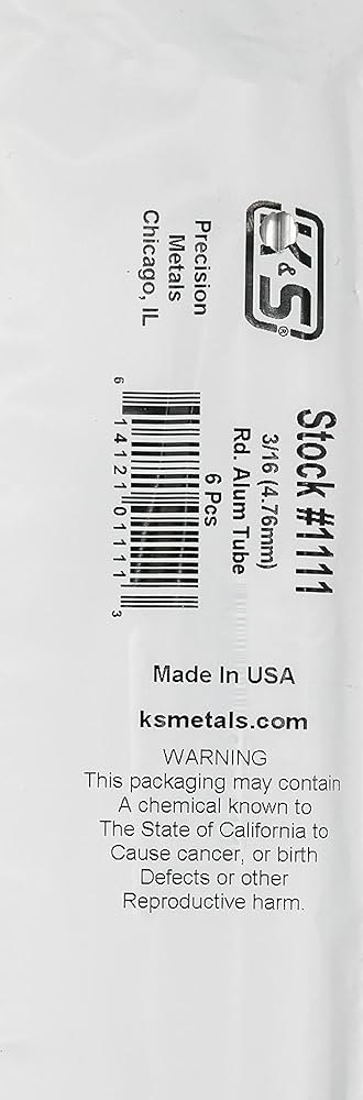 أنابيب ألومنيوم مستديرة K&S 1111، 3/16 بوصة OD × 0.014 بوصة جدار × 36 بوصة طول، 6 أنابيب، مصنوعة في الولايات المتحدة الأمريكية