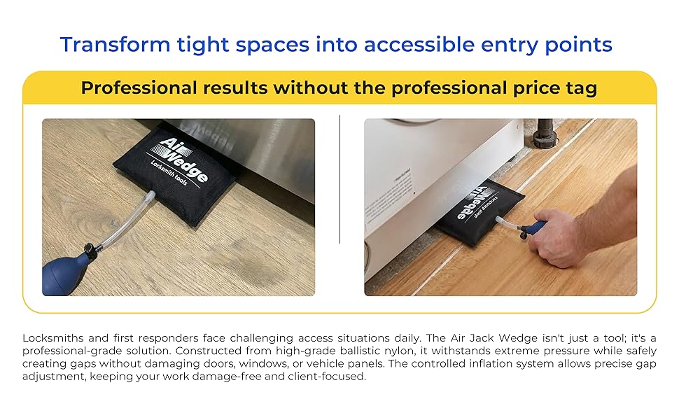 آمن وغير قابل للتشوه: على عكس القضبان المعدنية أو الحشوات الخشبية، فإن الإسفين الناعم القابل للنفخ يخلق مسافة يمكن التحكم فيها دون خدش الأسطح المطلية أو الألواح المنبعجة أو إتلاف الإطارات الحساسة والمواد النهائية، مما يساعد على حماية الأسطح أثناء مهام التثبيت والمحاذاة.