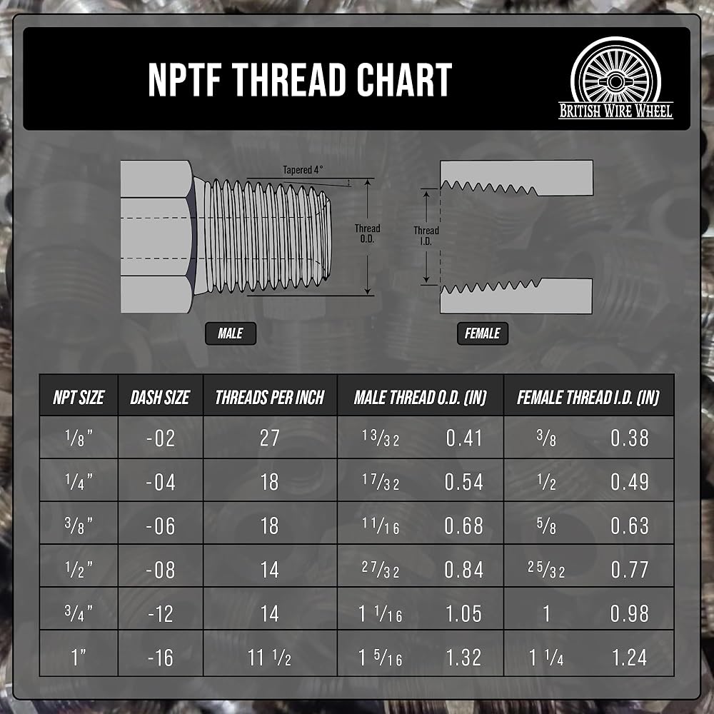 Thread Size Disclaimer: Nominal thread sizes do not equal actual measured diameters. For accurate sizing, always use calipers and reference a thread size chart. This applies to NPT, NPTF, JIC, NPSM, and other common hydraulic threads.
