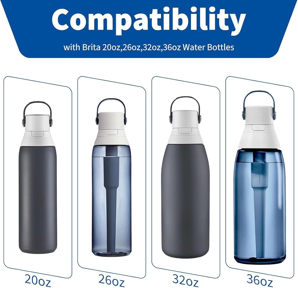 UNIVERSAL COMPATIBILITY: Designed to compatible with Brita water bottles in sizes 20, 26, 32, and 36 oz, including both filter and stainless steel bottle models