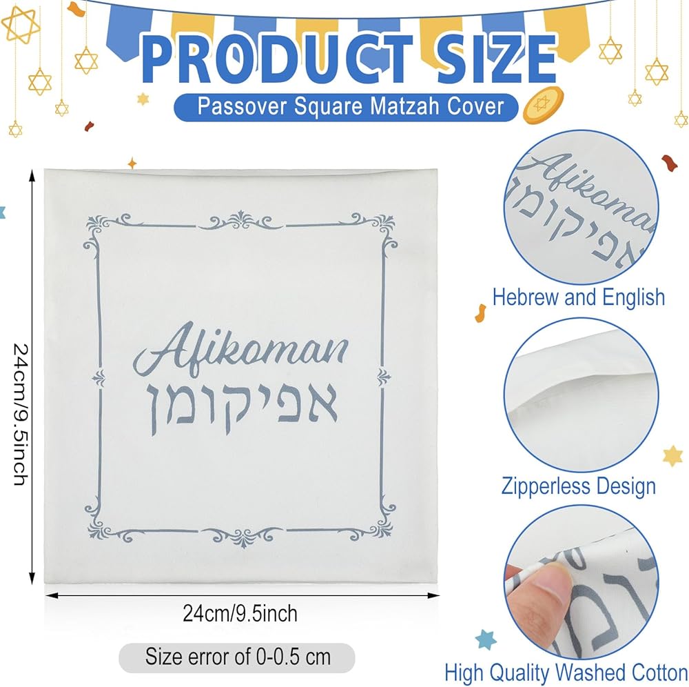 • Convenient Size: each afikoman holder measures 9.45 x 9.45 inches/ 24 x 24 cm, and the square design makes for easy storage and transportation, ensuring your matzah stays safe and intact, making it a great addition to your Passover holiday