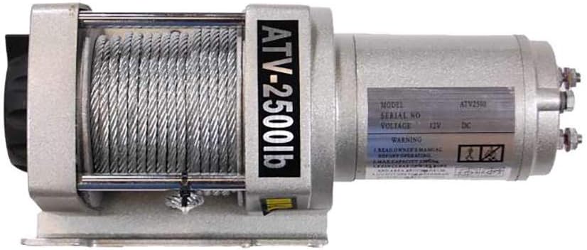 ATV Winch 2500LB Rated Line Pull This 2500 LB capacity ATV winch is ideal for light duty ATV or UTV, and is designed to accommodate entry-level users looking for great value. Meeting the rugged demands of ATV and utility use, the ATV2500W features quality, power, and performance advantages of the ME Winch brand. Specification: Rated Line Pull: 2500LB Gear Ratio: 153:1 Gear Train: NGWN Type Planetary Gear Transmission Clutch: Turn Motor: Permanent Magnet DC 12V Motor 0.9HP Output Battery Leads: 0.24" x 6' Control: 0.02" x 10.17' Black 0.02" x 10.17' Green 0.02" x 4.6' Red Motor Leads: 0.39" x 4.6' Overall Dimension(LxWxH): 11.85"x7.40"x4.72" Drum Size: 1.61"(D) x 2.9"(L) Fairlead: Roller Fairlead Cable Length: 50ft(L) of 3/16"(D) We also have 2000 LB ATV winch and 3500 LB ATV winch available. And check out our other auto tools such as roadside emergency kit, car jack for more choices.