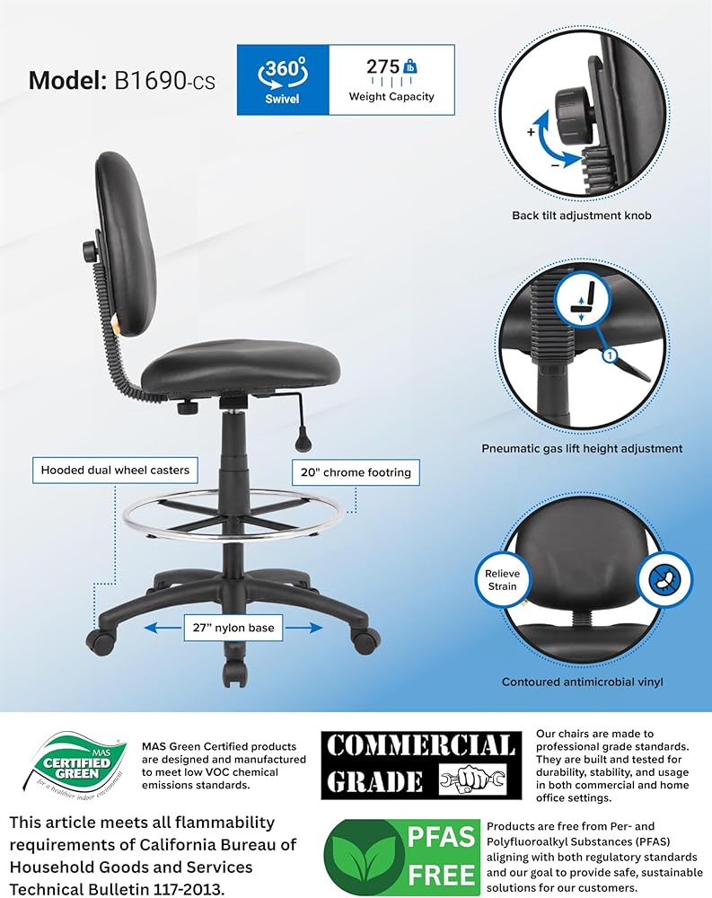 Bring professionalism and grace to your Drafting Stool brings comfort and efficiency to your office. The adjustability of this seat ensures this unit is perfect for persons of any size. Sit back and get the job done with the Drafting Stool.