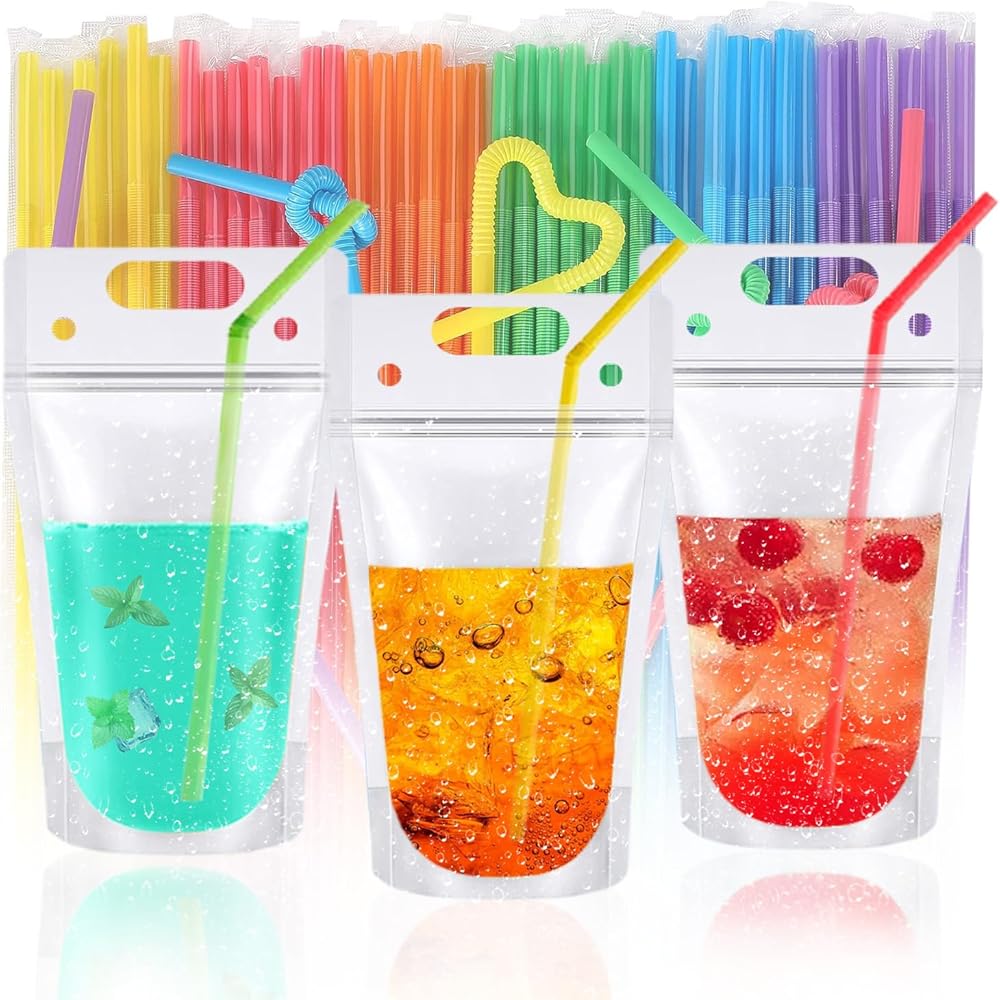 Our juice pouches are ideal for many parties,like 16th birthday party,Buffet wedding banquet,at home party,ball party,cocktail party, picnic party,Surprise party...Our handy, stylish plastic drink pouches bags with straws is the perfect choice for these relaxing, cozy parties.Because it is more convenient and surprise than those bulky glasses or ordinary paper cups.