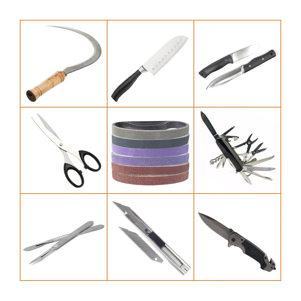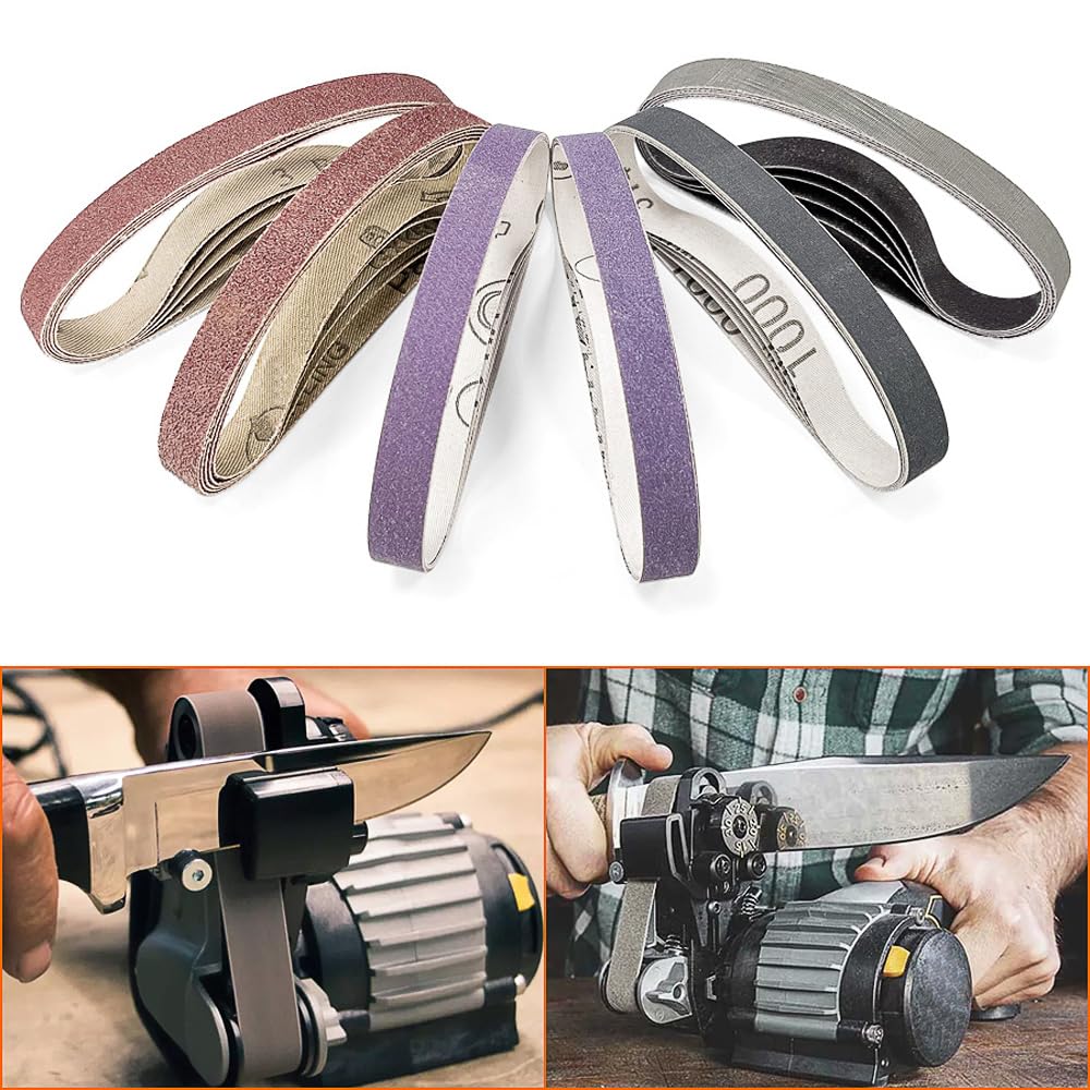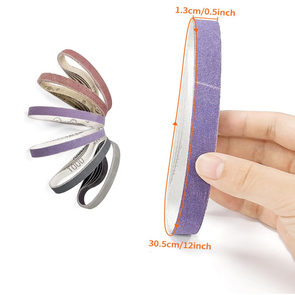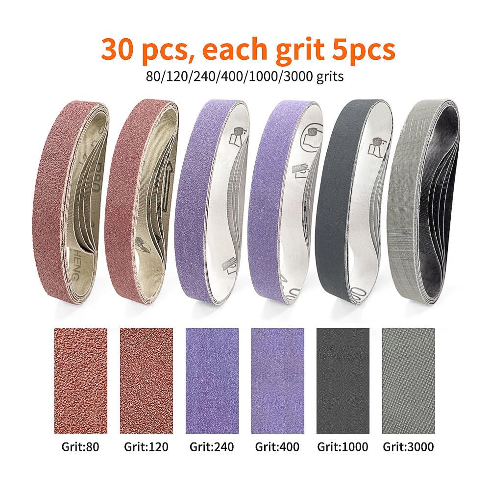 مجموعة كاملة مكونة من 30 قطعة - 6 حبيبات: 80، 120، 240، 400، 1000، 3000؛ 5 أحزمة لكل منها، مرمزة بالألوان وملصقة لسهولة التعرف عليها.