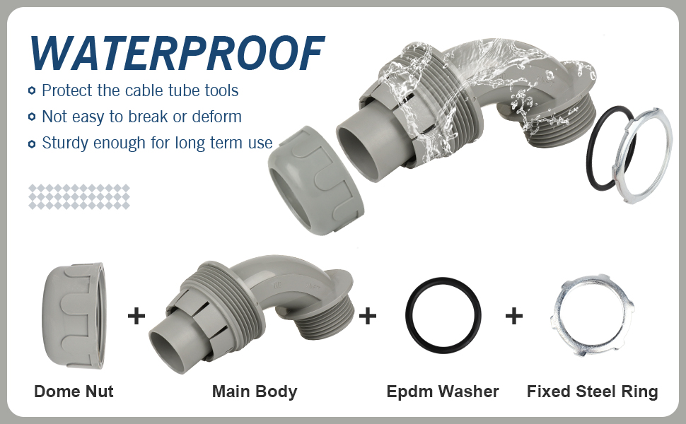 [تركيب سريع] بدون استخدام أي أدوات، يمكن ربط موصلات القناة غير المعدنية بسهولة بالقناة أو الأنبوب أو الصندوق الكهربائي. يتم توصيل حلقة الموصل بالقناة أو الأنبوب بمجرد دفعها عليها وشد الجوز المقبب.