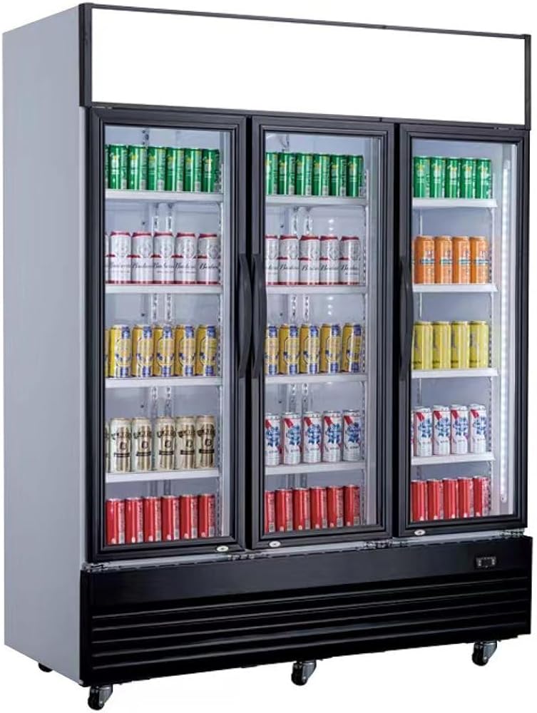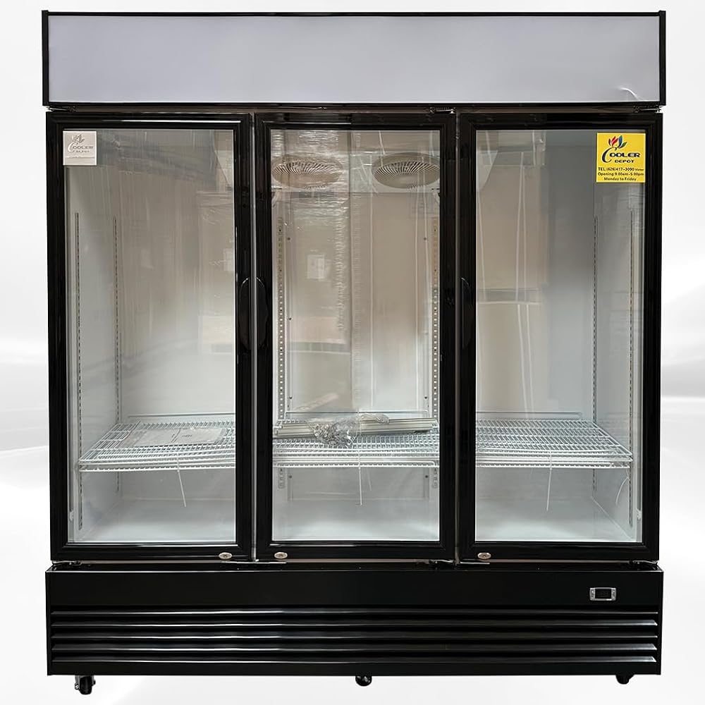 ثلاجة تجارية زجاجية بثلاثة أبواب متأرجحة NSF مبرد عرض المشروبات مبرد المشروبات، معتمد من ETL، NSF، قائم، سعة 69 قدم مكعب، عرض 74 بوصة، لوحة عرض علوية 110 فولت CLG-1320BF
