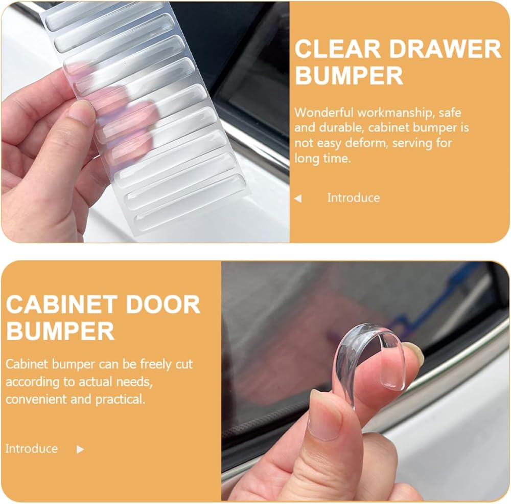 -Multi-functional and useful, clear cabinet bumper is suitable for cabinet doors, sliding door, glass tabletops, and more adhesive drawer bumper.