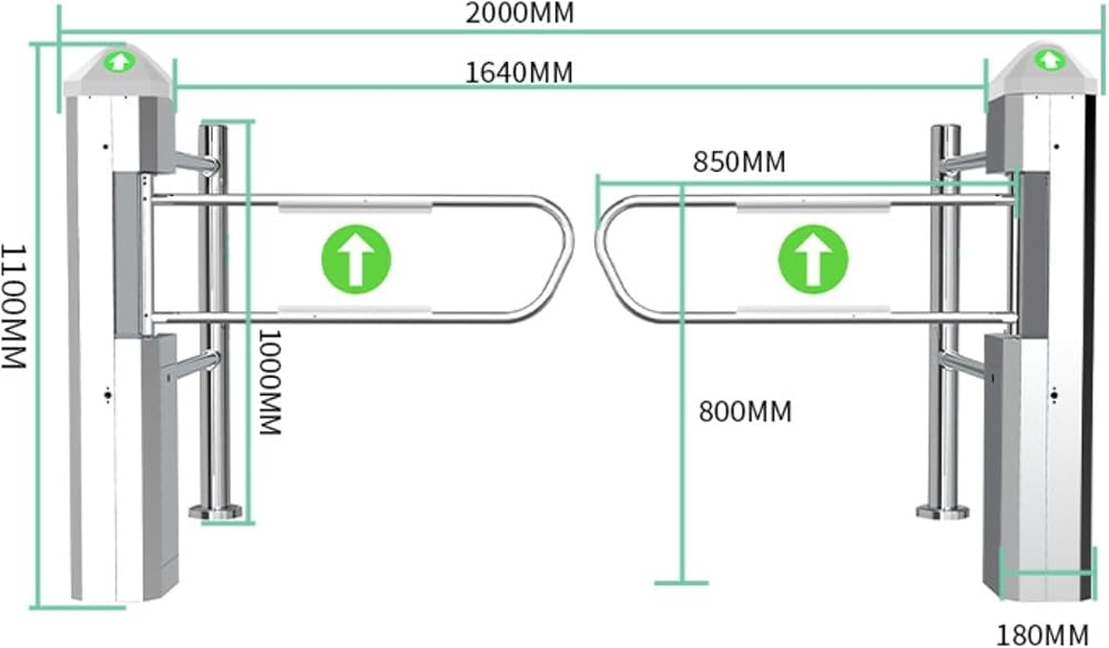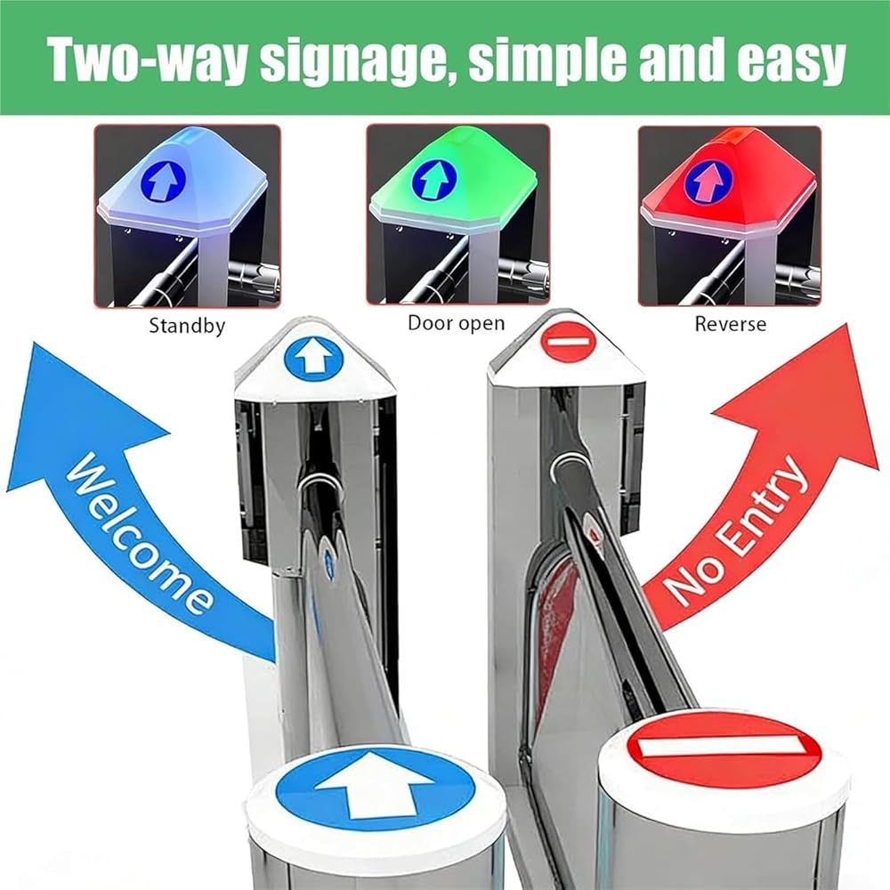 This entrance gate provides an efficient solution for managing pedestrian flow in various environments such as shopping malls, office buildings, and event venues.