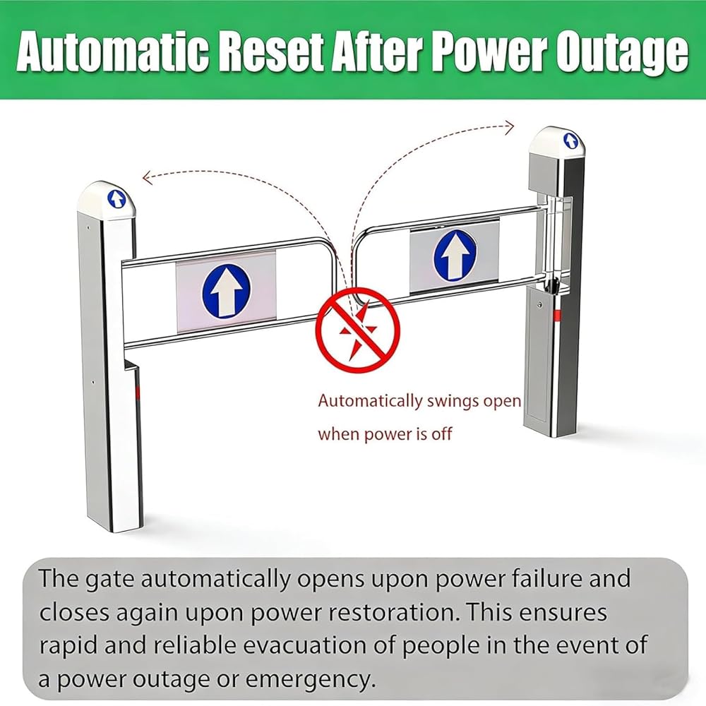 In case of power failure, the swing arm will automatically open, ensuring safe and convenient evacuation for personnel, while also guaranteeing safety.