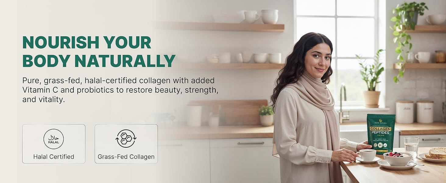مصمم لأنماط الحياة الحلال والروتين اليومي: بروتين الكولاجين الحلال للنساء والرجال الذين يريدون الصحة المتوافقة مع الإيمان؛ يناسب أنماط الكيتو والباليو ويعمل بشكل جيد في السحور والإفطار وأيام العمل المزدحمة أو طقوس ما بعد التمرين كعادة الكولاجين البسيطة التي يتم تناولها مرة واحدة يوميًا.