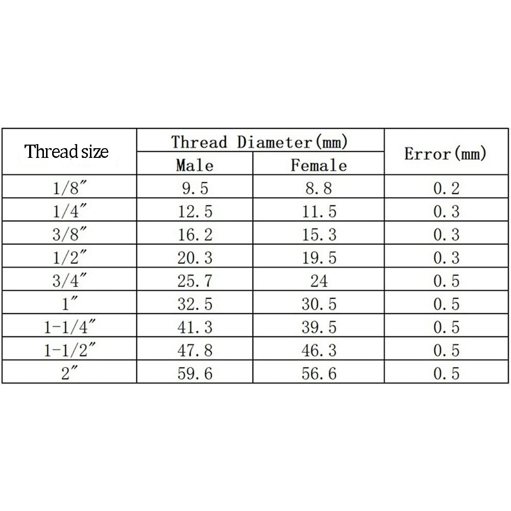 - Thread:1/8" 1/4" 3/8" 1/2" 3/4" 1" 1-1/4" 1-1/2" 2" 2-1/2" 3" 4" BSPT NPT Euqal Female