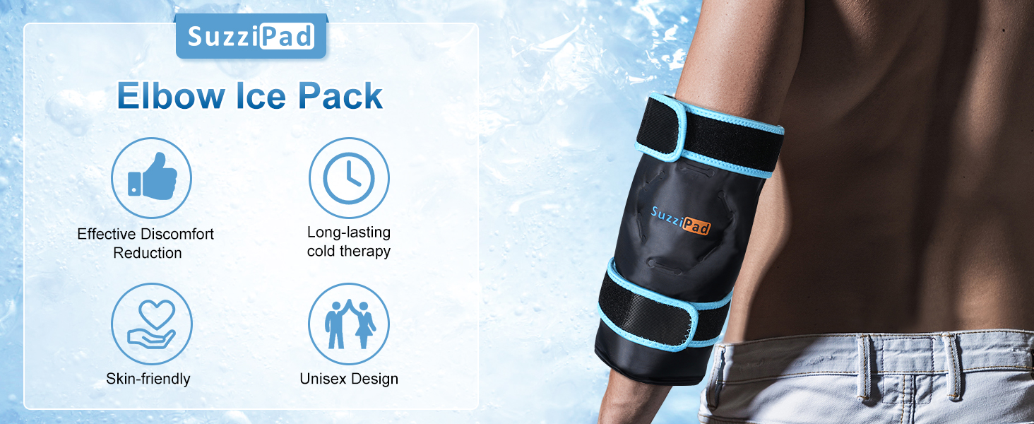 غلاف SuzziPad Elbow Ice Pack - كم ضغط بارد يمكن ارتداؤه للمرفق والساعد، حزمة ثلج قابلة لإعادة الاستخدام للتعافي من التنس والجولف، أسود in Kuwait