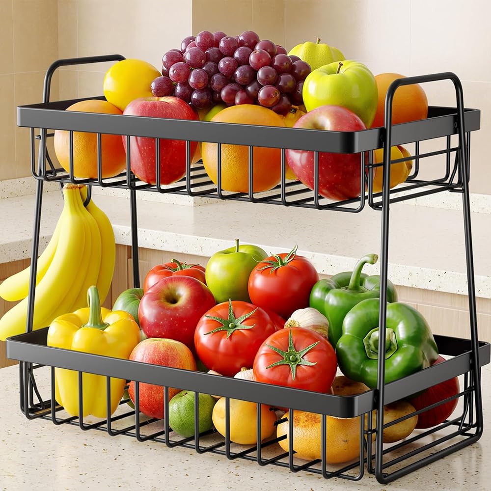 • سلة موفرة للمساحة: بأبعاد 13.4 بوصة × 8.7 بوصة × 11.7 بوصة، يعمل هيكل هذه السلة ثنائي الطبقة على زيادة المساحة الرأسية دون ازدحام العدادات. يمكن فصل كل طبقة للاستخدام الفردي، مما يوفر تخزينًا مرنًا للفواكه أو الوجبات الخفيفة أو الخضروات، مع الحفاظ على مطبخك أو منطقة تناول الطعام مرتبة وفعالة.