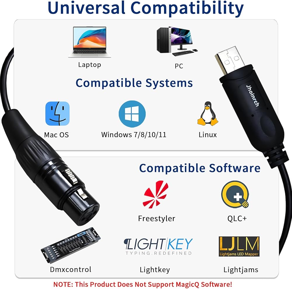 [دعم المشتري] تدعم Jhoinrch USB DMX (10FT/3M) مع دعم فني مدى الحياة، واستبدال المنتج وضمان لمدة عام واحد، وضمان رضا العملاء بنسبة 100%.