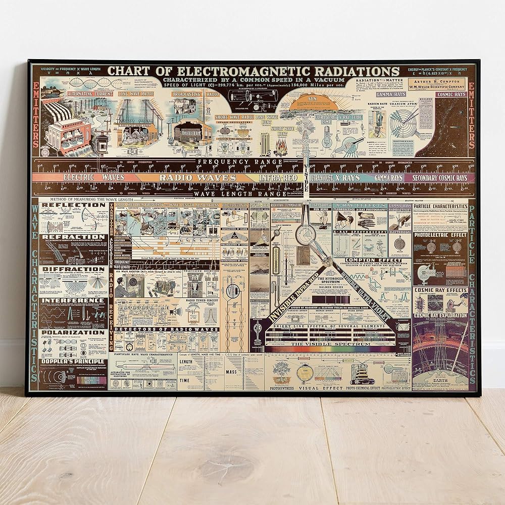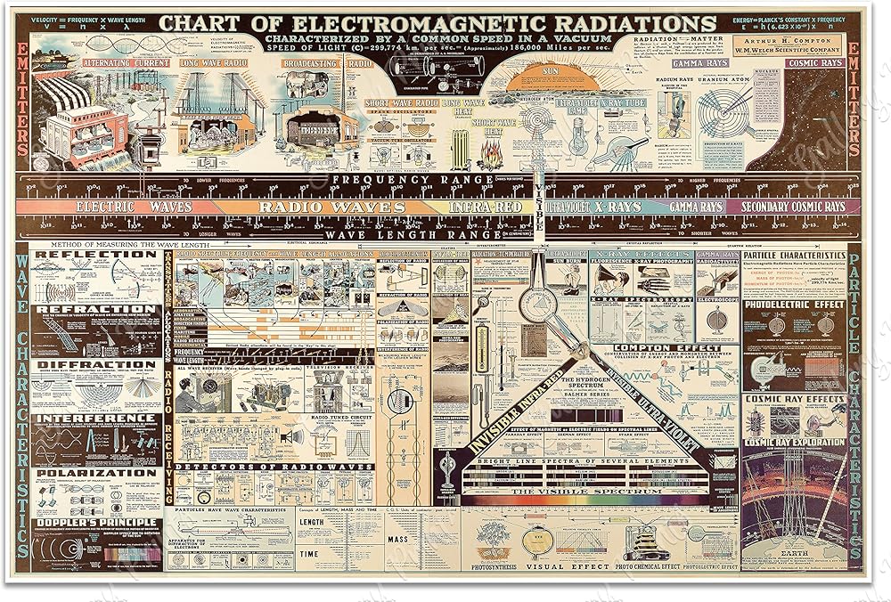 Experience the nostalgic allure of scientific history with this vintage reprint of the Chart of Electromagnetic Radiations by the esteemed W.M. Welch Scientific Company, originating from circa 1944. Adorn your walls with this meticulously restored piece, showcasing the intricate interplay of electromagnetic waves, reminiscent of a bygone era of scientific exploration and discovery. A timeless tribute to the enduring fascination with the electromagnetic spectrum, encapsulating the essence of mid-20th-century scientific illustration.