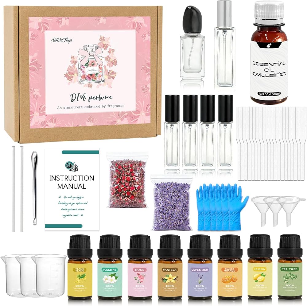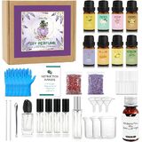 مجموعة صنع العطور الكاملة: تأتي مجهزة بالكامل بجميع الأدوات الدقيقة والمواد عالية الجودة بما في ذلك الزيوت العطرية والمستحلب والنشافات والزجاجات الأنيقة والقفازات ودليل شامل مصمم لجلسة صنع عطور سلسة وممتعة.