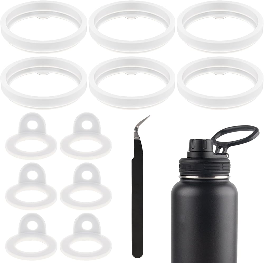 13 Pcs Seal Replacement 24/32/40/64oz, Water Bottle Lid Replacement Accessories with 1 Pcs Tweezers Silicone O Ring Parts Spout Lid