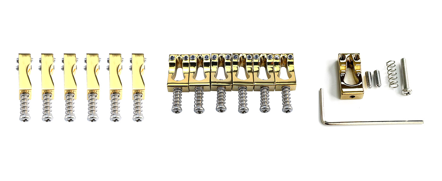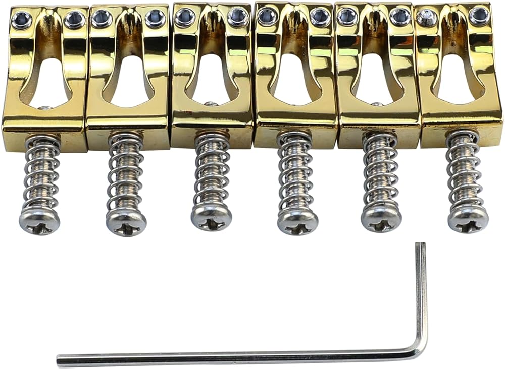 - مظهر رائع: تتميز سروج جسر الجيتار الكهربائي المصنوعة من سبائك الزنك بتصميم قوس فريد، مع شكل مقعر - محدب، مليء بالتفرد.