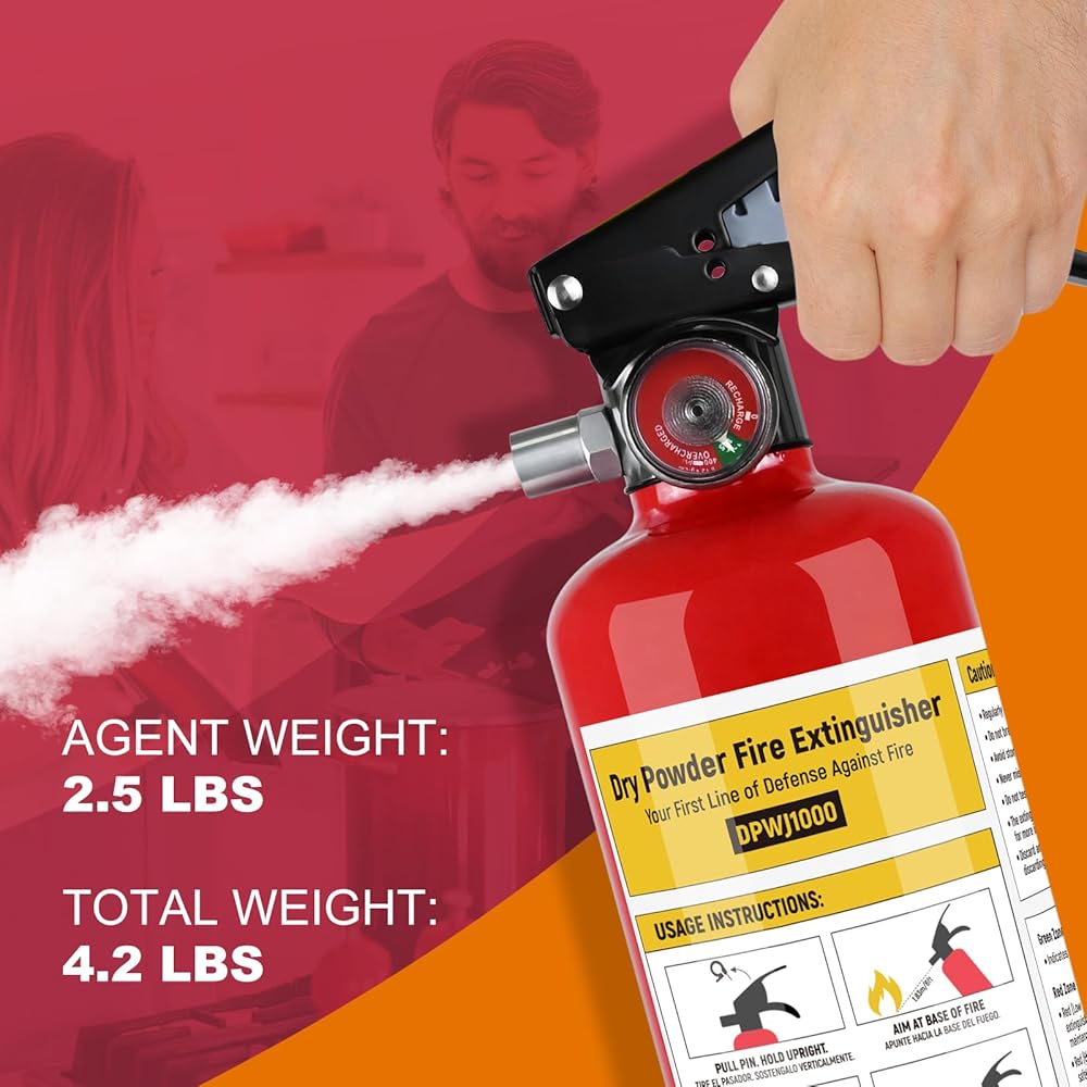 طفاية حريق موثوقة ومتينة - صُممت لتعمل في درجات حرارة شديدة تتراوح من -22 درجة فهرنهايت إلى 140 درجة فهرنهايت، وتعد طفاية الحريق ذات المسحوق الجاف مثالية للمركبات والجراجات والمناخات الباردة. مع عمر افتراضي يصل إلى 6 سنوات وبنية متينة، فهو ضروري للسلامة يمكن الاعتماد عليه لكل منزل أو سيارة.