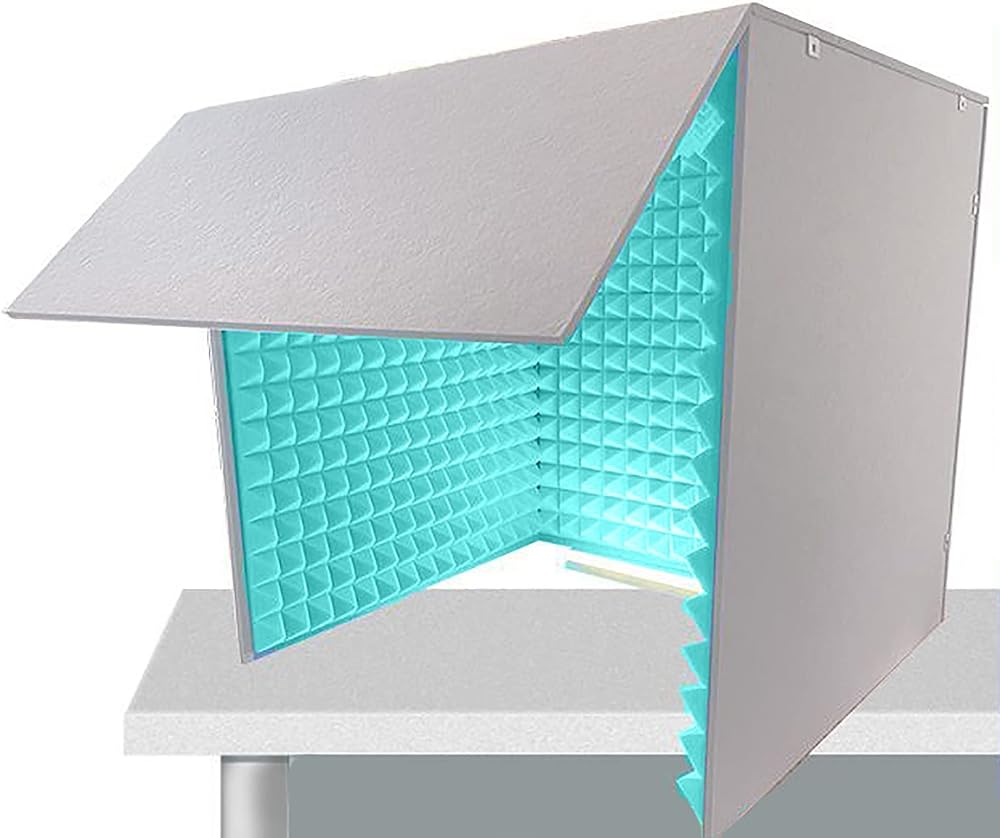 كشك صوتي محمول، كشك عزل، كشك الصوت، غطاء عازل للصوت لسطح المكتب، معدات استوديو تسجيل الصوت ذاتية الصنع، درع ممتص للتحلل الدقيق، لمكتب الاستوديو، تسجيل، أزرق
