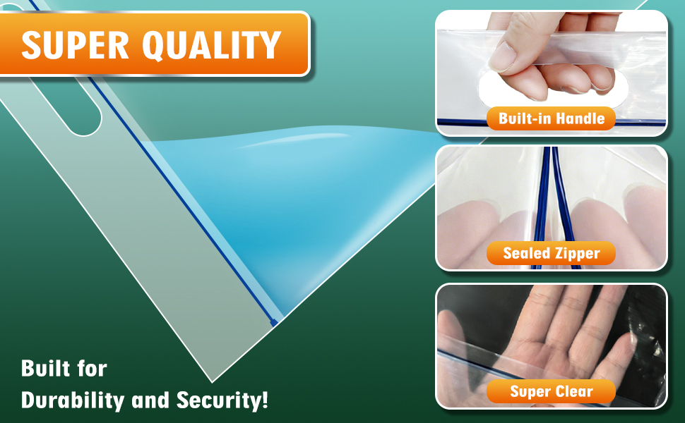 تنظيم شفاف مبسط: توفر حقائبنا الشفافة القابلة للإغلاق رؤية سريعة للمحتويات. مثالية للمنزل أو العمل، هذه الحقائب البلاستيكية ذات السحاب الصديقة للبيئة مصممة لإعادة الاستخدام، وتقليل النفايات وتوفير استراتيجية تنظيم مستدامة طويلة الأمد.