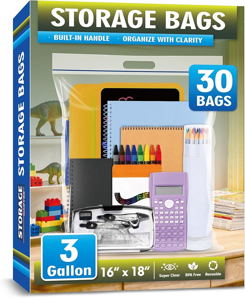 أكياس متعددة الاستخدامات بسعة 3 جالون للتخزين المرتفع: توفر هذه الحقائب المتينة والشفافة القابلة للإغلاق، بحجم 16 × 18 بوصة، مساحة واسعة لتنظيم زينة عيد الميلاد وديكور العطلات والمزيد. مصنوعة من بلاستيك عالي الجودة بسمك 2 مل، مما يضمن بقاء أغراضك آمنة ومأمونة