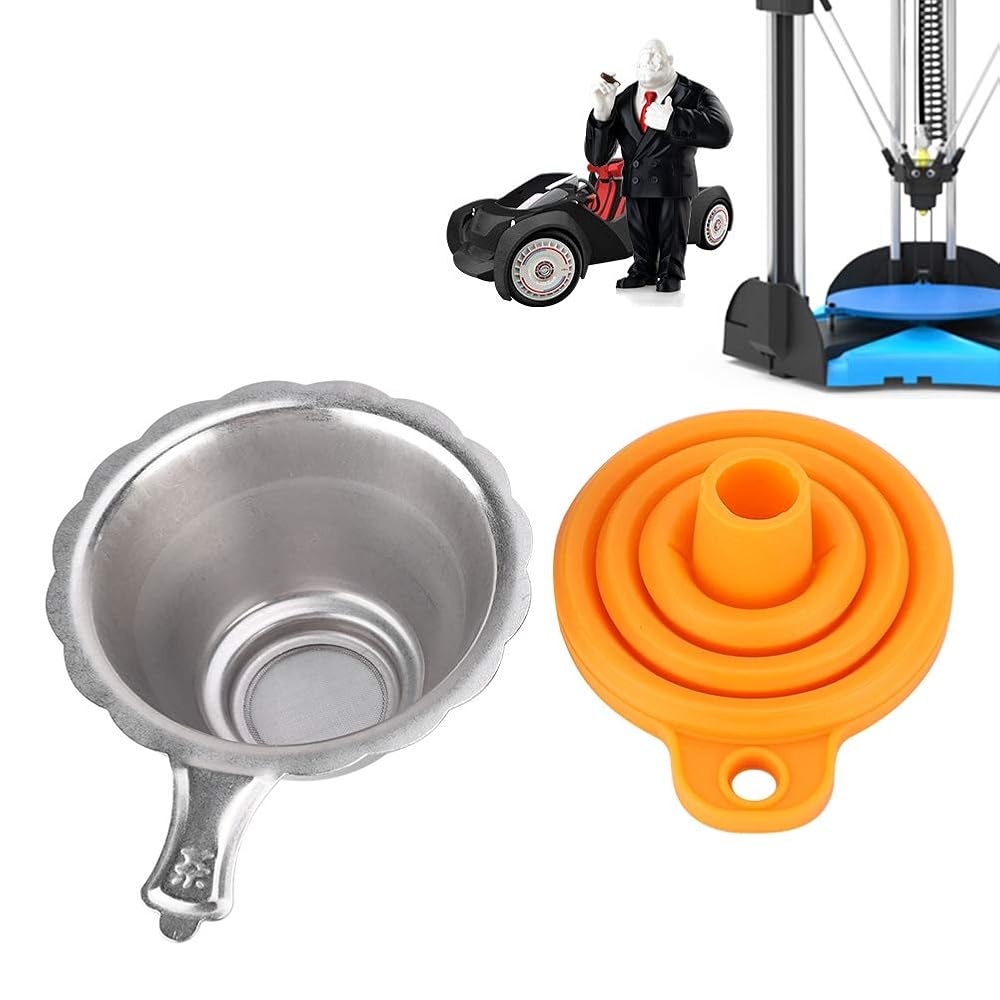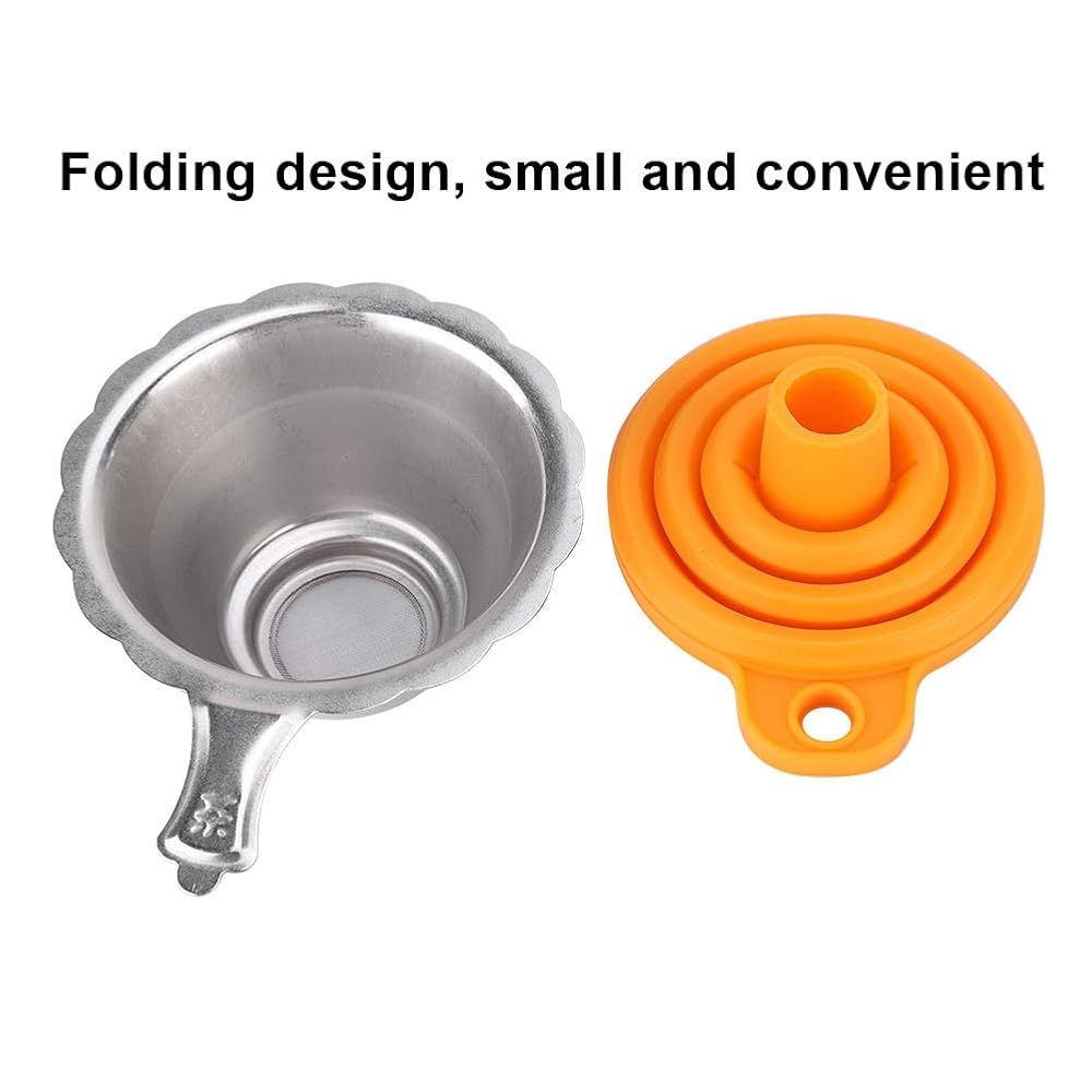 • Silicone funnel + metal filter net. (Random Funnel Color)