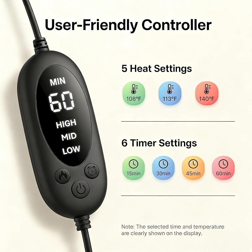 خيارات درجة الحرارة والمؤقت المخصصة: توفر وسادة تسخين العين هذه للعيون الجافة ثلاثة مستويات لدرجة الحرارة (منخفضة 108 درجة فهرنهايت، متوسطة 113 درجة فهرنهايت، عالية 140 درجة فهرنهايت) وأربعة إعدادات مؤقت (15/30/45/60 دقيقة)، يمكنك اختيار درجة الحرارة والمدة المفضلة لديك. يضمن تصميم الإغلاق التلقائي الاستخدام الآمن.