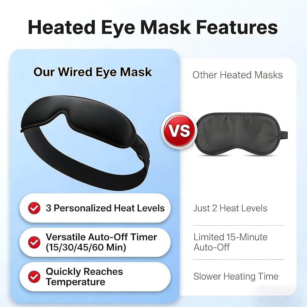 تسخين سريع ومتسق للتخفيف العميق: يسخن قناع العين الساخن بسرعة إلى درجة حرارة ثابتة، مما يوفر حرارة رطبة مهدئة مستمرة لتخفيف جفاف العين، وإجهاد العين، والتهاب الجفن، والشعيرات، والهالات السوداء، وانتفاخ العين، وصداع الجيوب الأنفية، والرعاية بعد العمليات الجراحية.