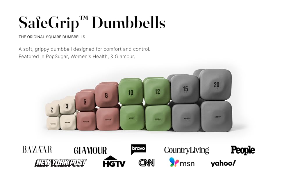 SECURE GRIP: Our SafeGrip Square dumbbells for women feature textured, anti-slip coating with thicker handles. These hand weights stay firmly in your palms during workouts, making your weights dumbbells safer and more effective.