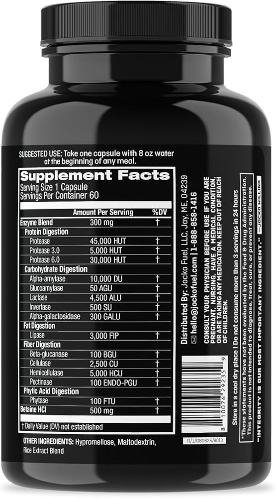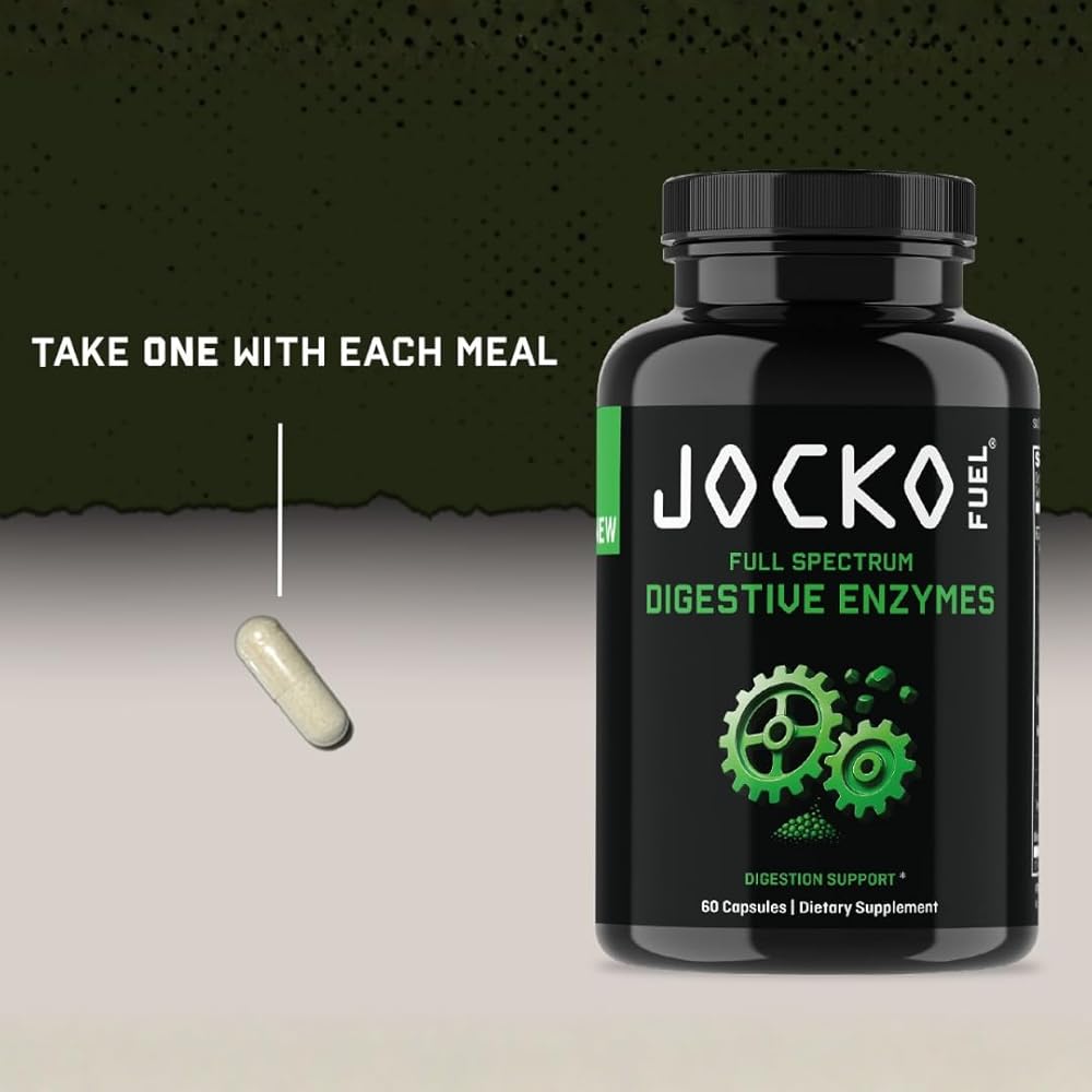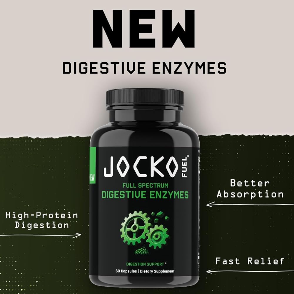 Every meal is fuel — if your body can break it down efficiently. Jocko Digestive Enzymes are a high-potency, full-spectrum formula designed to support digestion for protein-heavy, plant-rich, and performance-focused diets. This formula combines multi-pH proteases, lipase, carbohydrate- and fiber-digesting enzymes, plus specialty enzymes like lactase, alpha-galactosidase, and phytase. Added Betaine HCl supports the digestive environment where protein breakdown begins, helping the system work effectively across multiple stages of digestion. Built for real-world meals, Jocko Digestive Enzymes support smoother digestion, improved nutrient availability from whole foods, and a lighter stomach at mealtime — without fillers, gimmicks, or unnecessary ingredients.