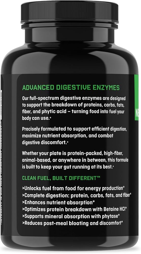 FULL-SPECTRUM DIGESTIVE ENZYME BLEND: High-potency formula featuring multi-pH proteases, lipase, amylases, lactase, alpha-galactosidase, phytase, and fiber-digesting enzymes to support the breakdown of protein, fats, carbs, fiber, and dairy from real-world meals.